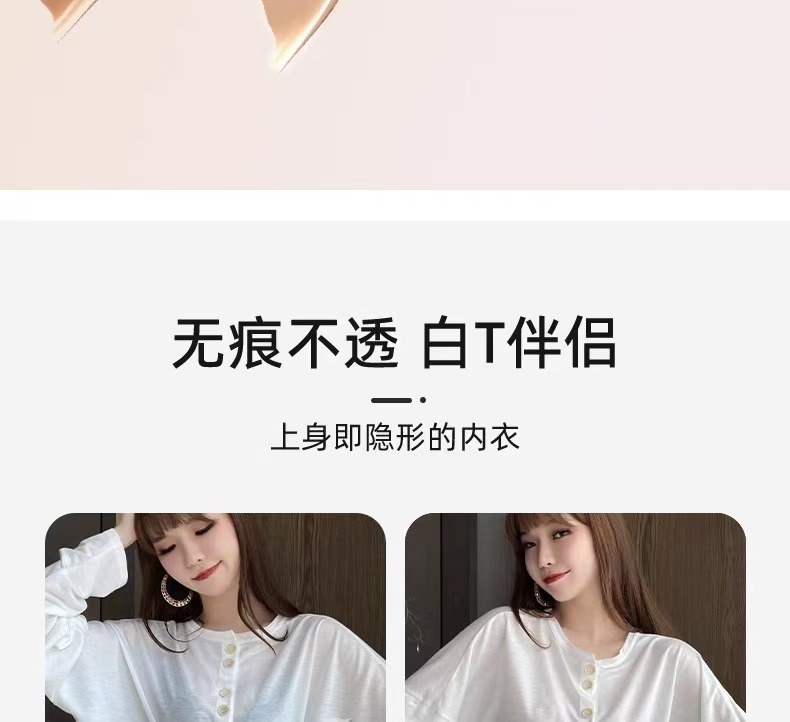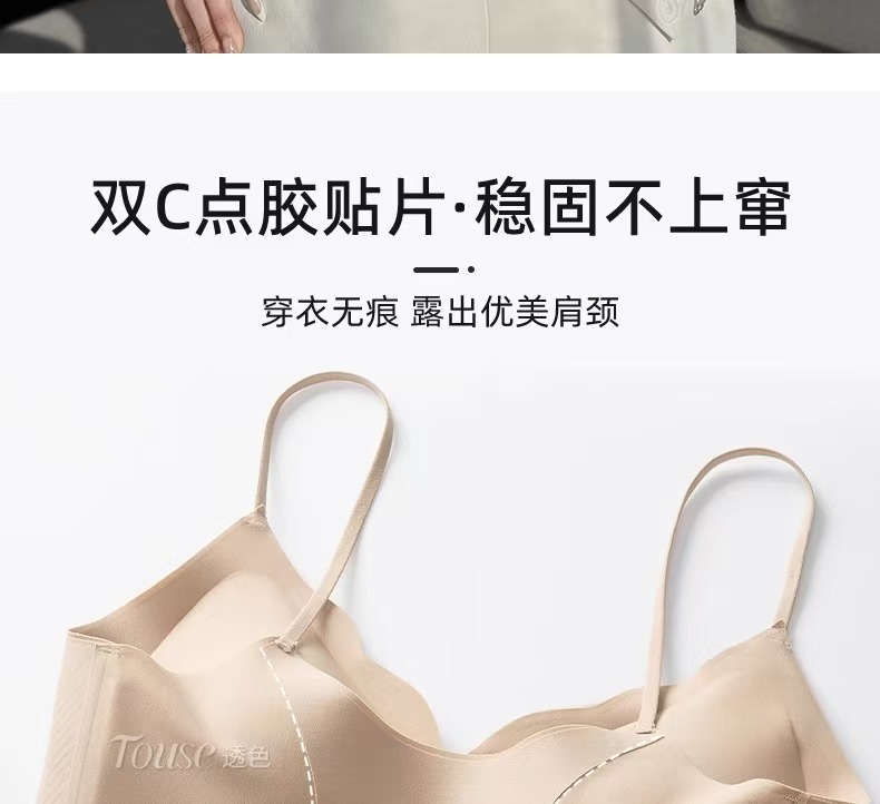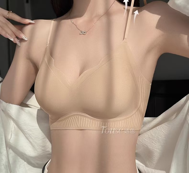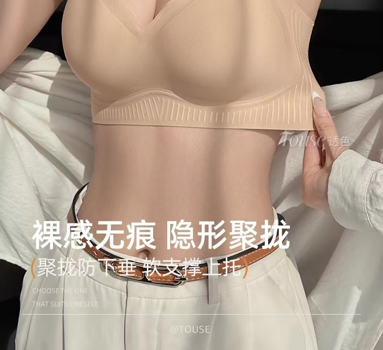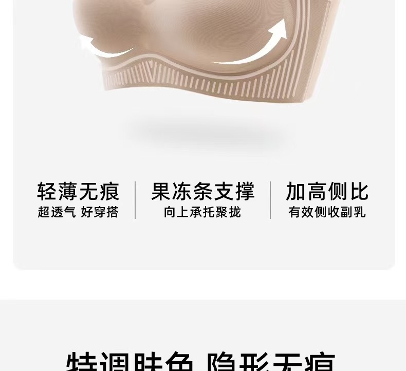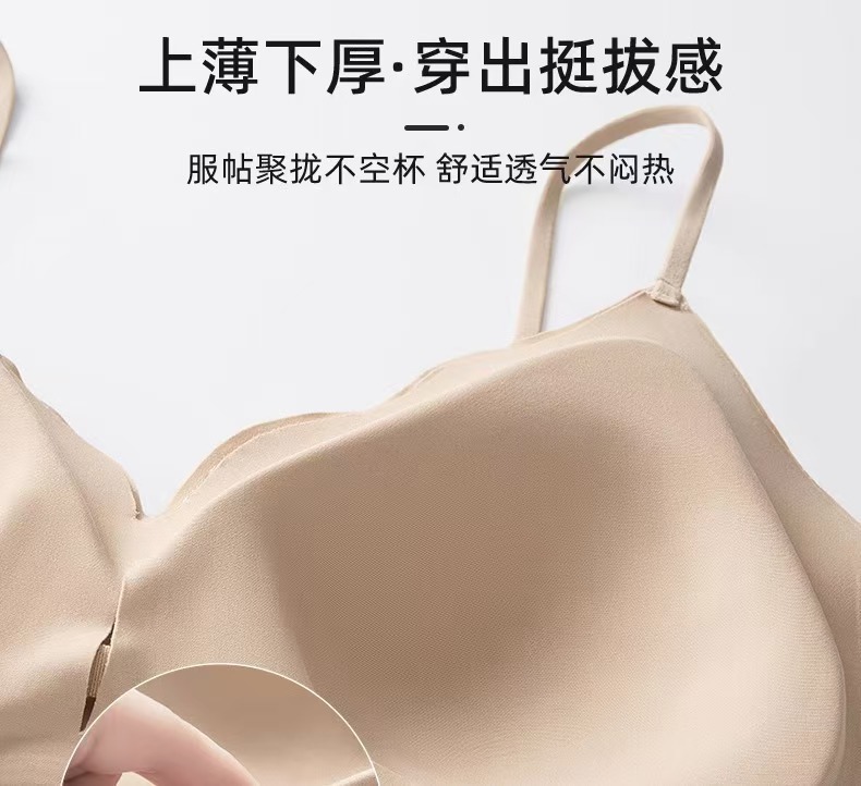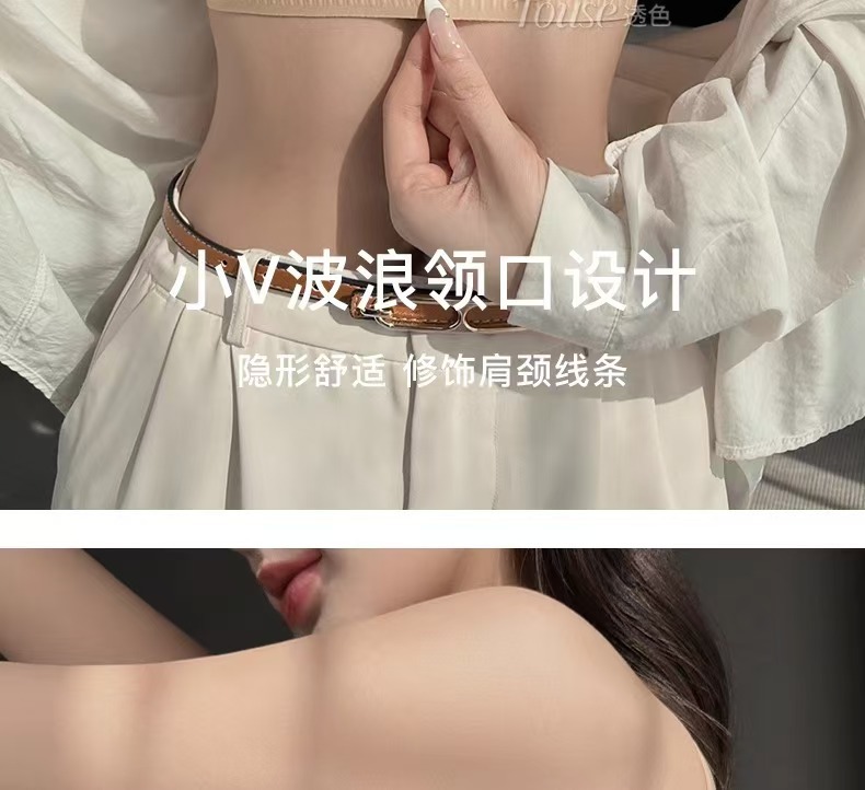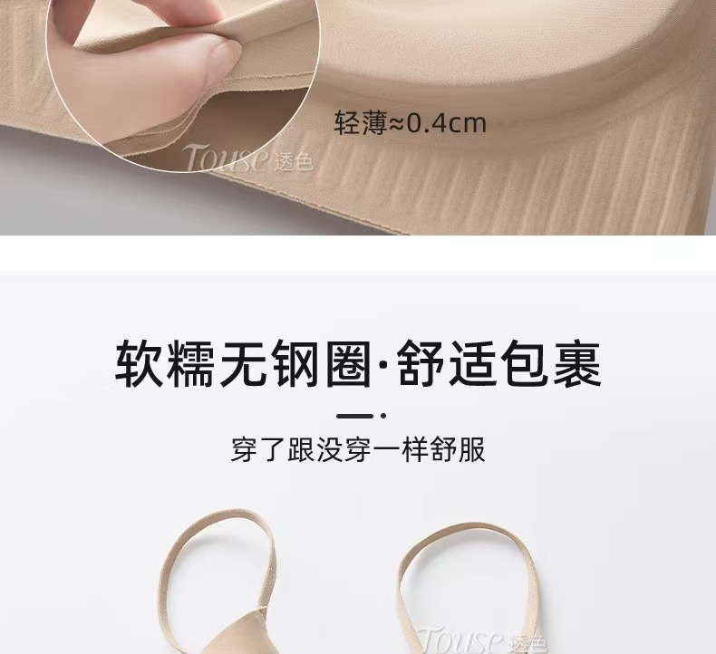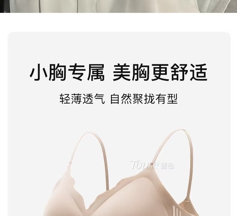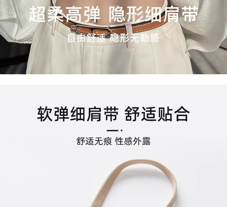 大胸显小粉底液隐形内衣女薄款胸聚拢吊带肉肤色无痕细肩带文胸
