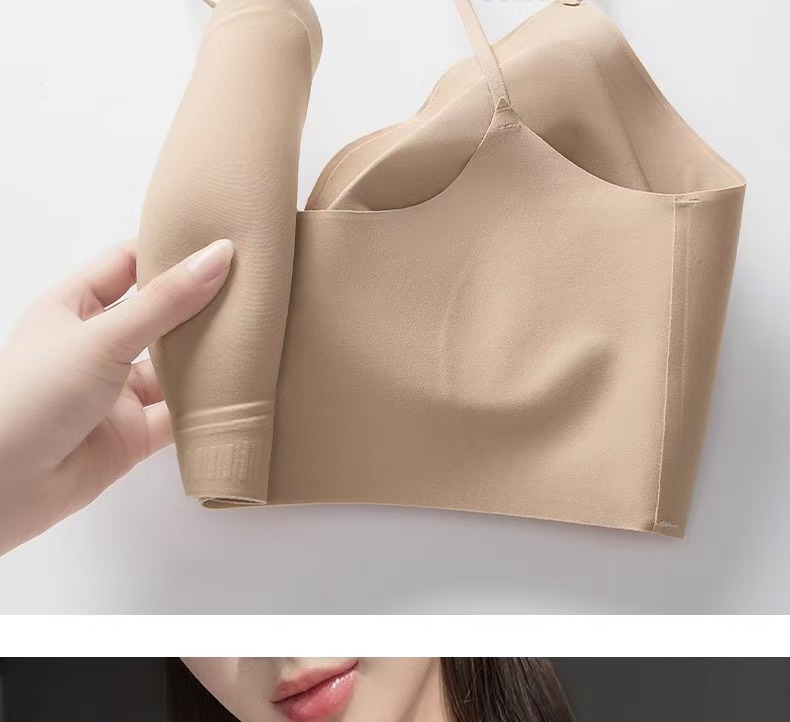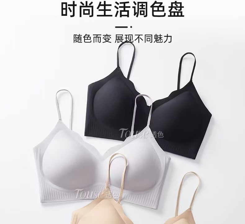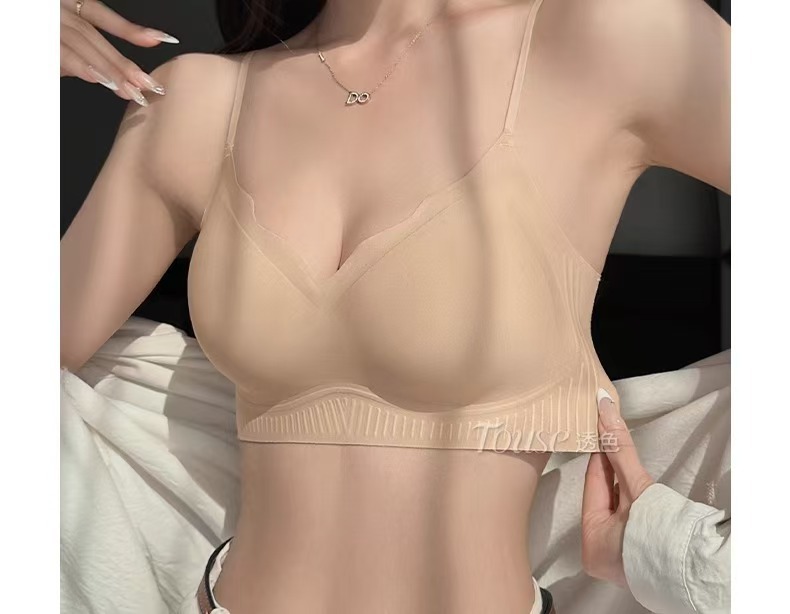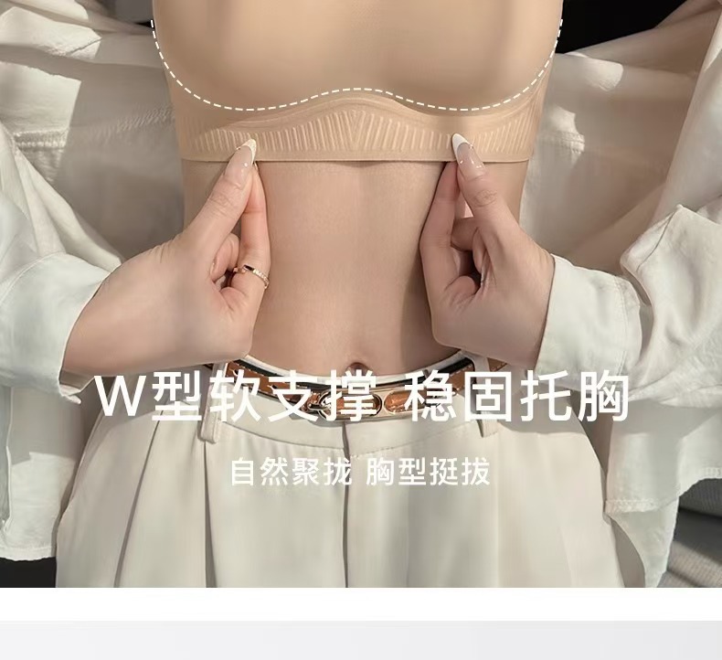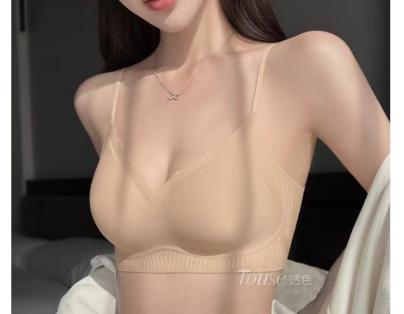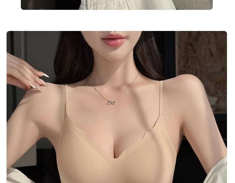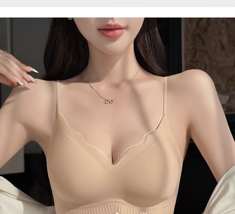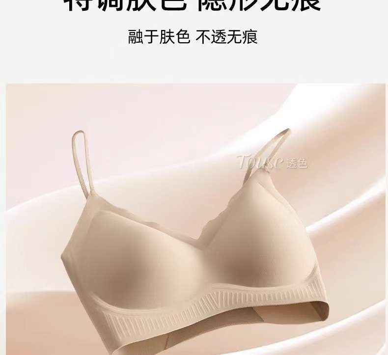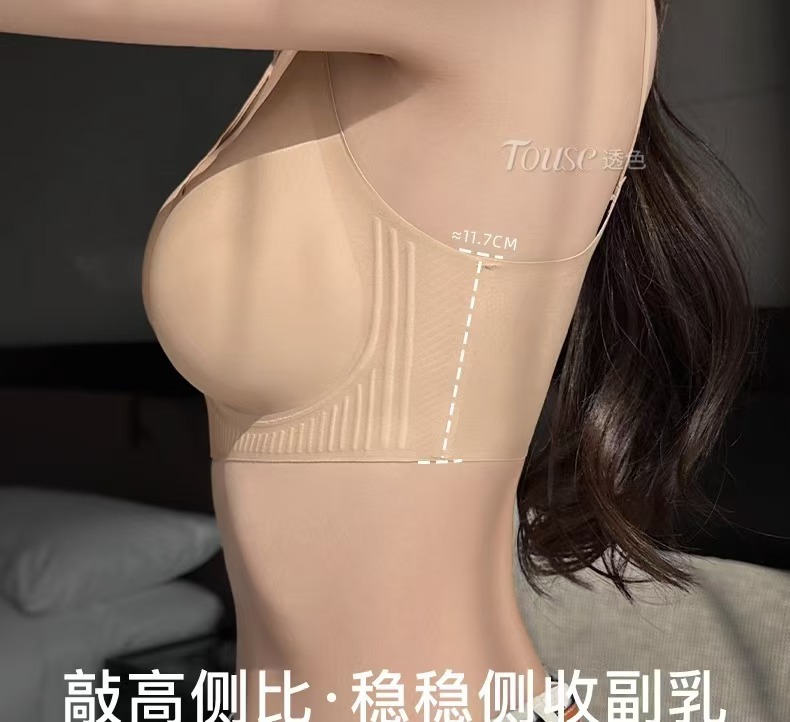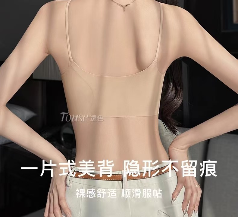 大胸显小粉底液隐形内衣女薄款胸聚拢吊带肉肤色无痕细肩带文胸