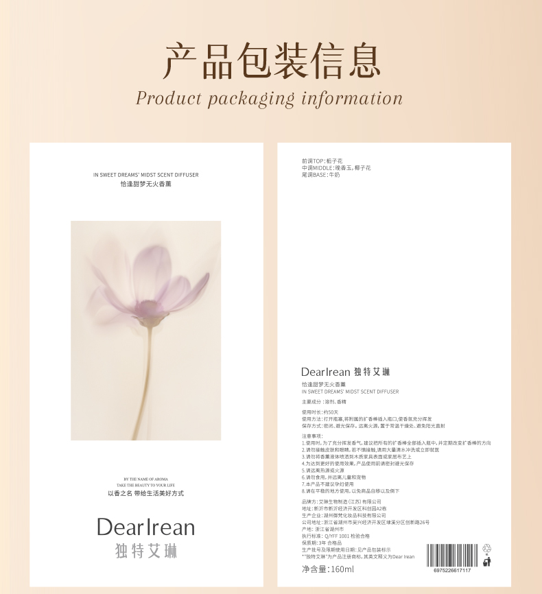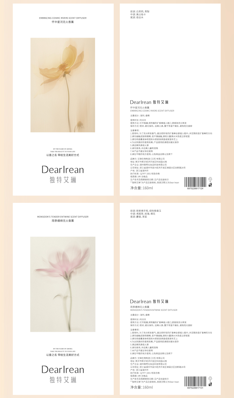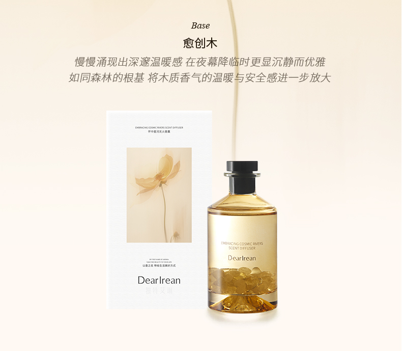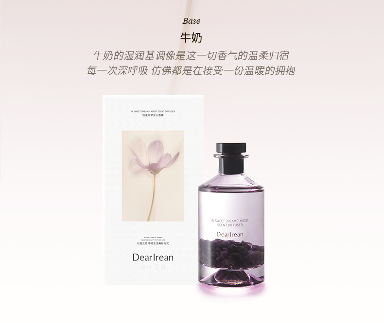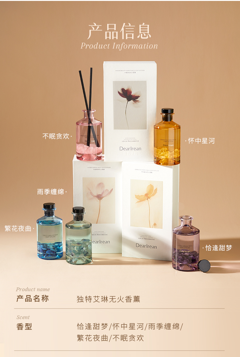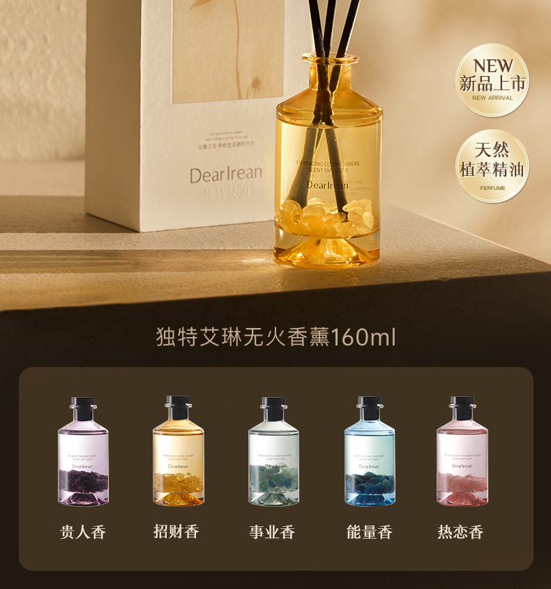 - DearIrean 独特艾琳,高定香氛生活品牌,拥有体•研究所,品牌致力于将高定香氛带入生活,同时倡导“以香之名,带给生活美好方式”的品牌理念,传递精致女性的爱、独立、自信。