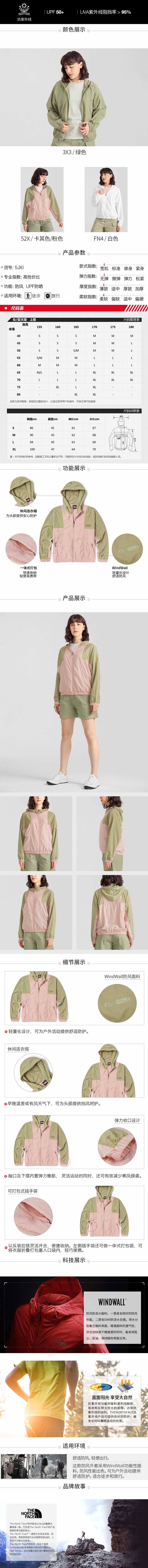 北面皮肤衣女户外防风防晒NF0A5JXI52X1