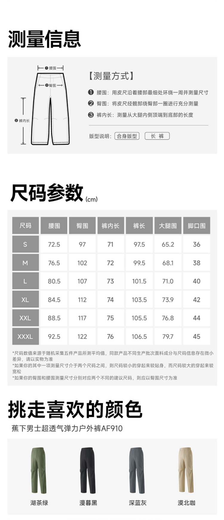 【25春夏】蕉下男士超透气弹力户外裤AF910