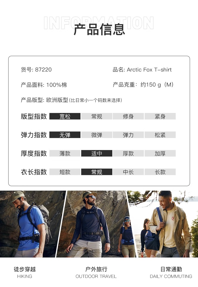 Fjallraven北极狐夏季印花情侣短袖户外运动休闲圆领棉T恤 87220