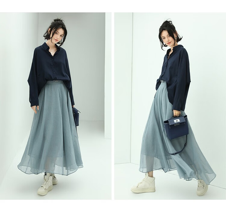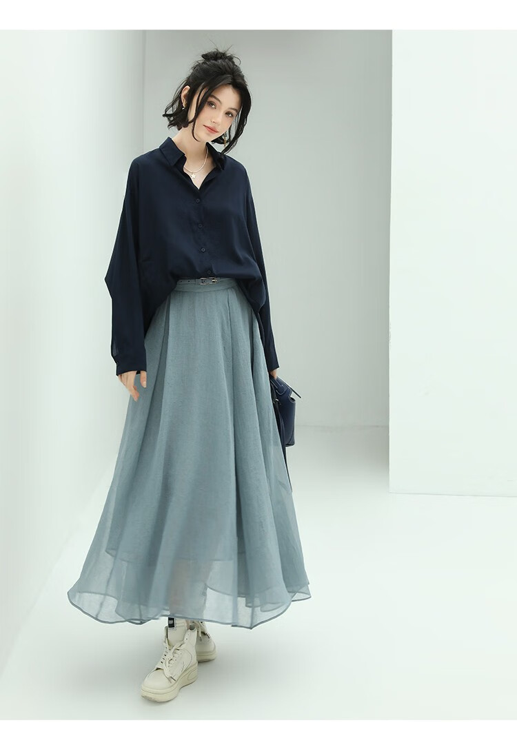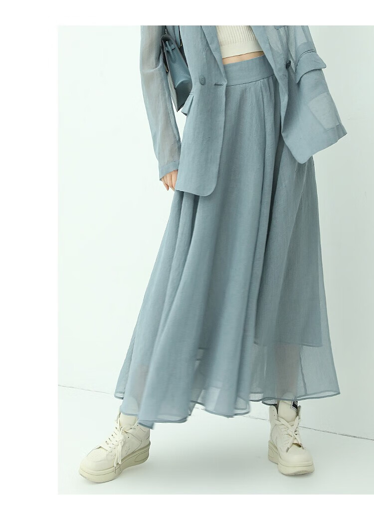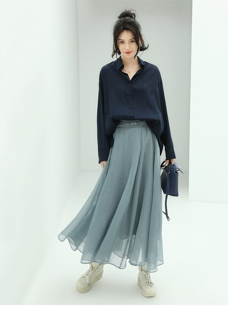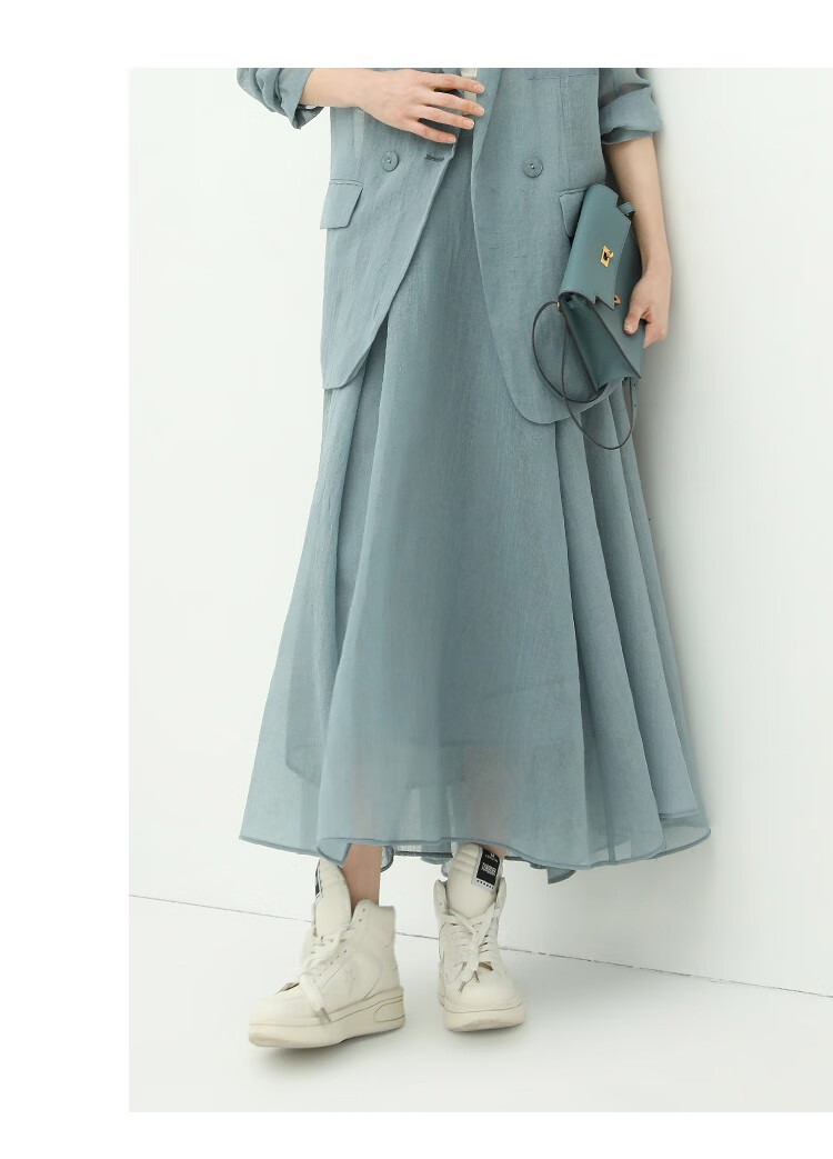 【有赞】COCOBELLA新中式肌理褶皱多层次大摆半身裙飘逸半身长裙HS99