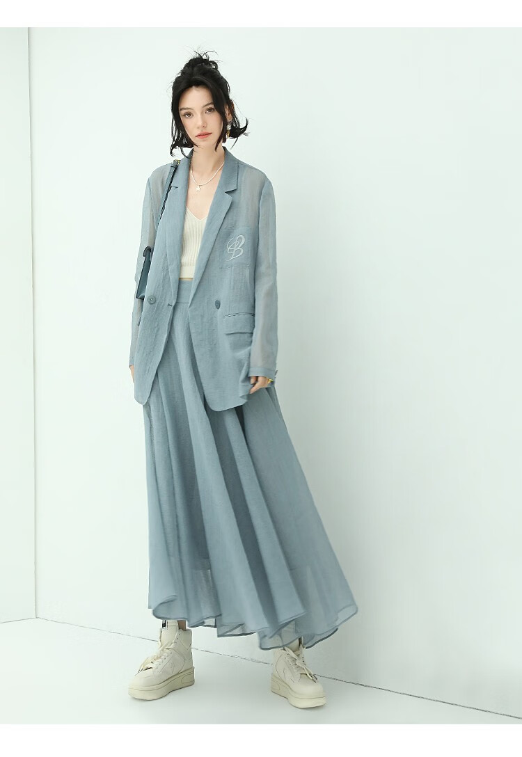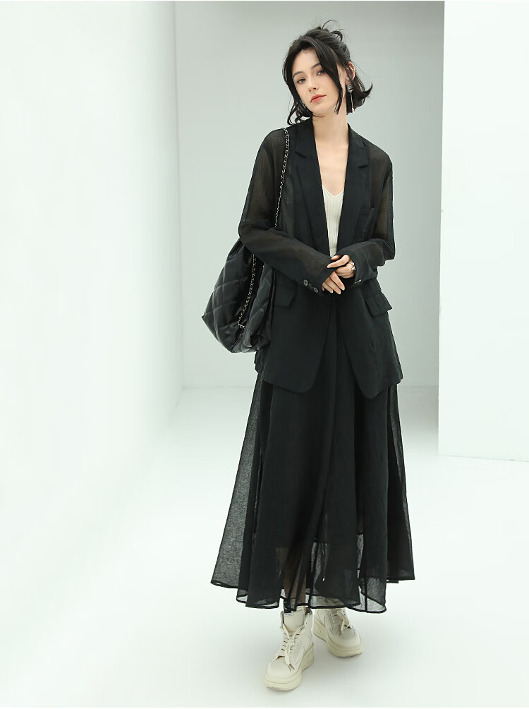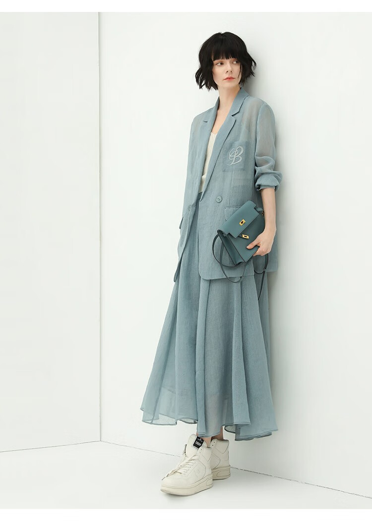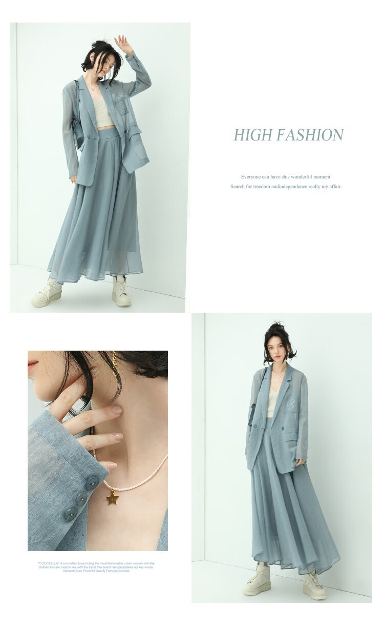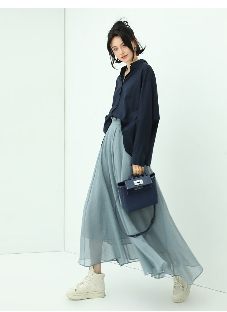 【有赞】COCOBELLA新中式肌理褶皱多层次大摆半身裙飘逸半身长裙HS99