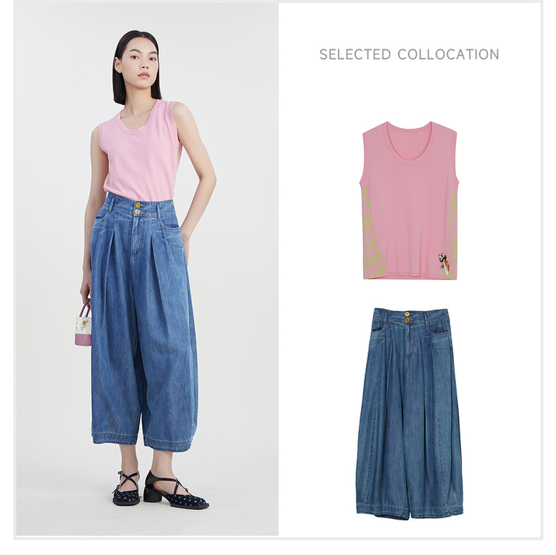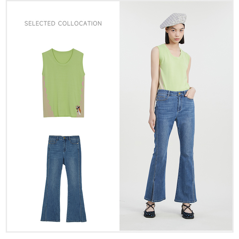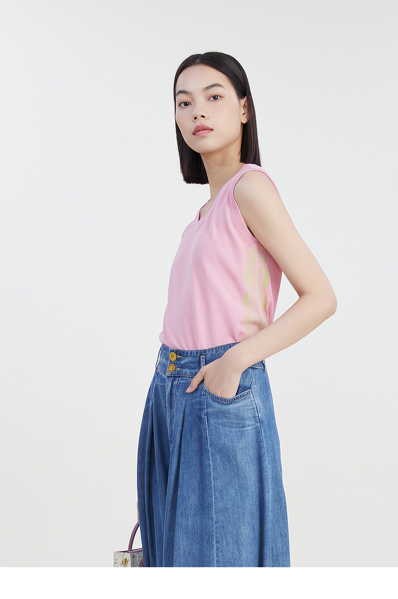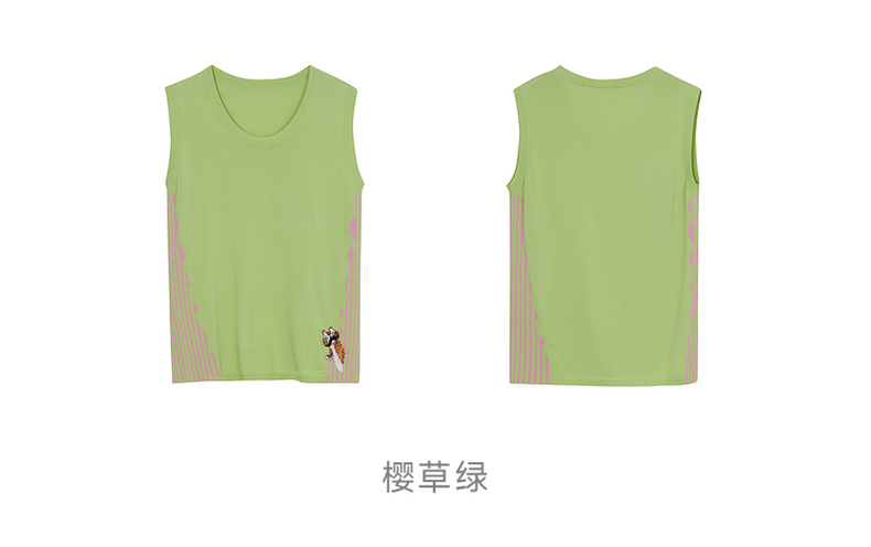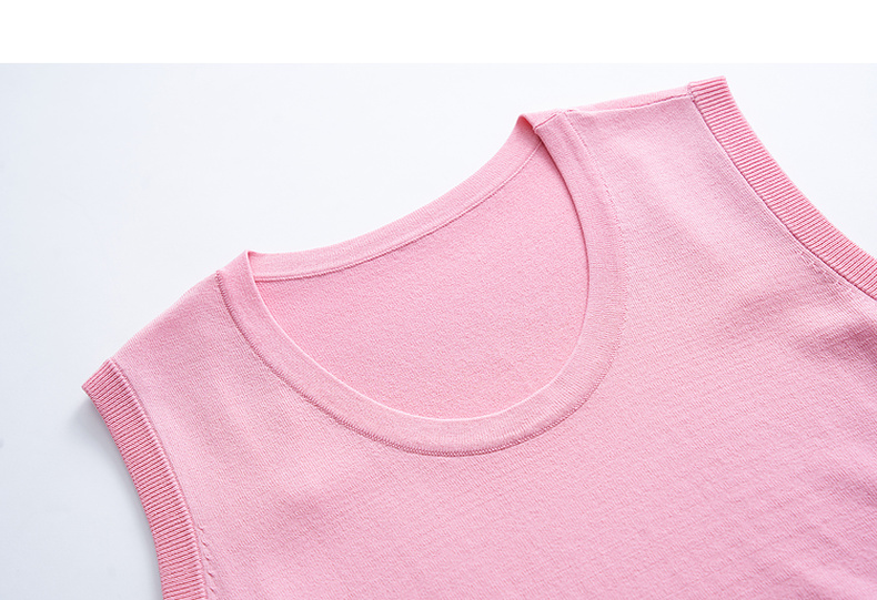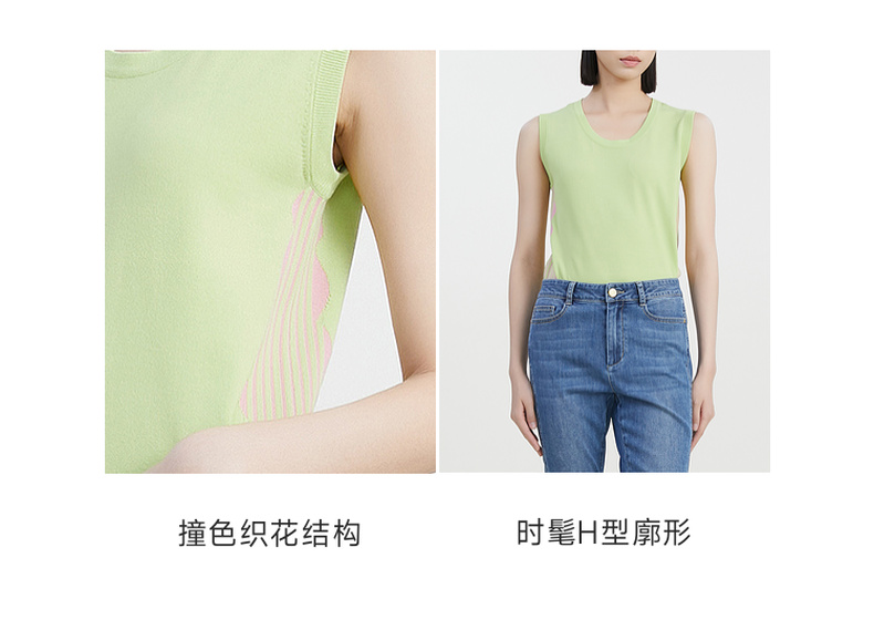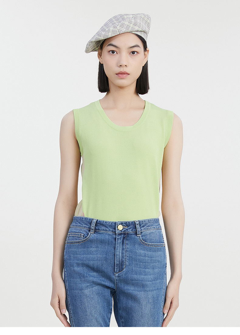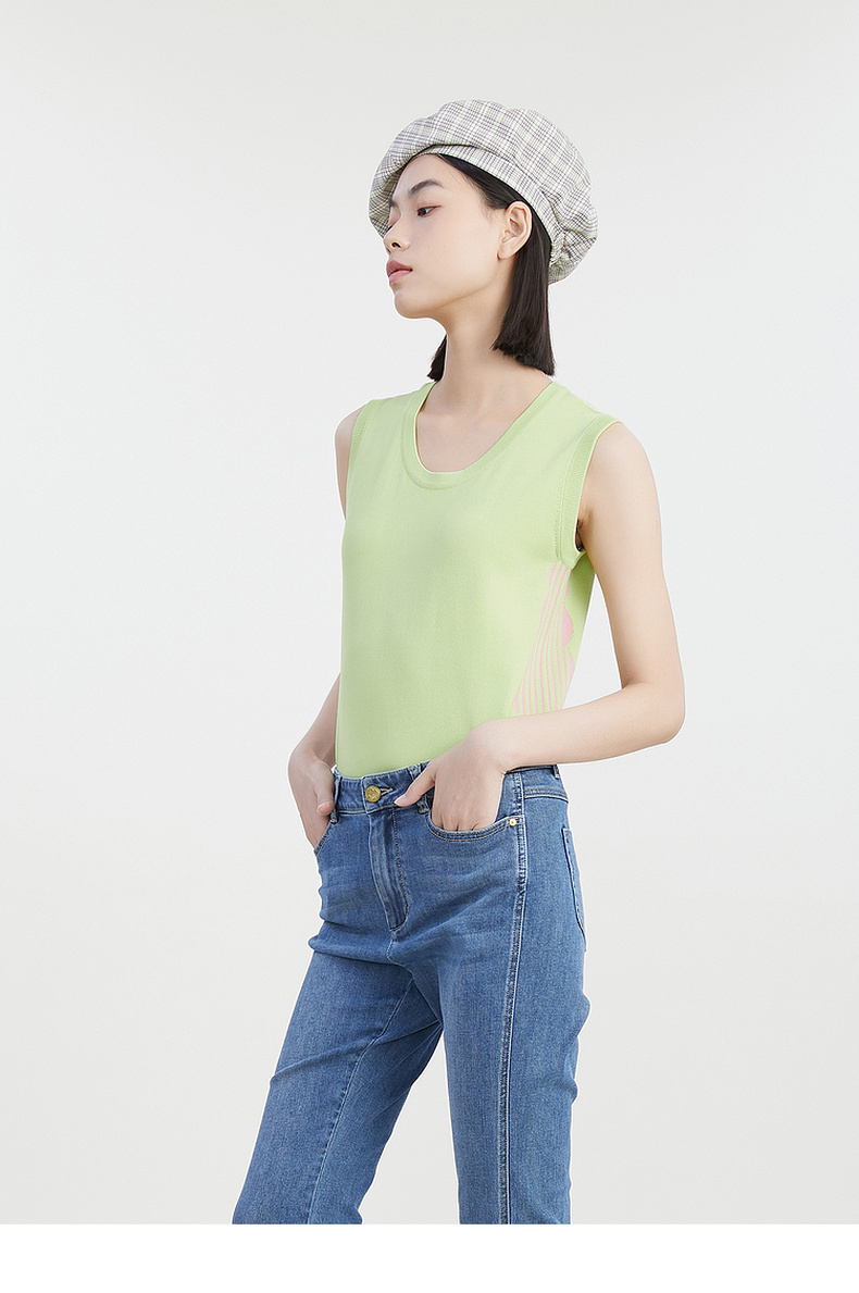 谜底圆领套头针织衫女2023夏新款百搭修身针织上衣无袖232MZ0866