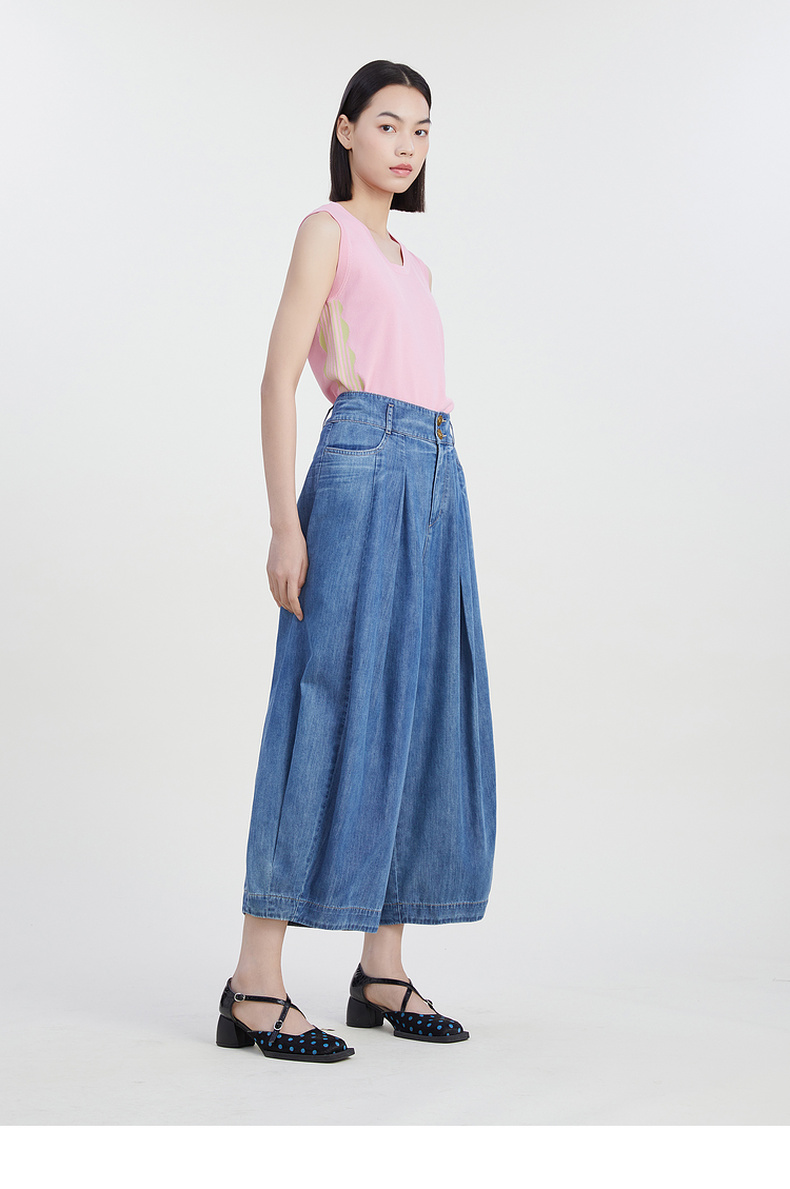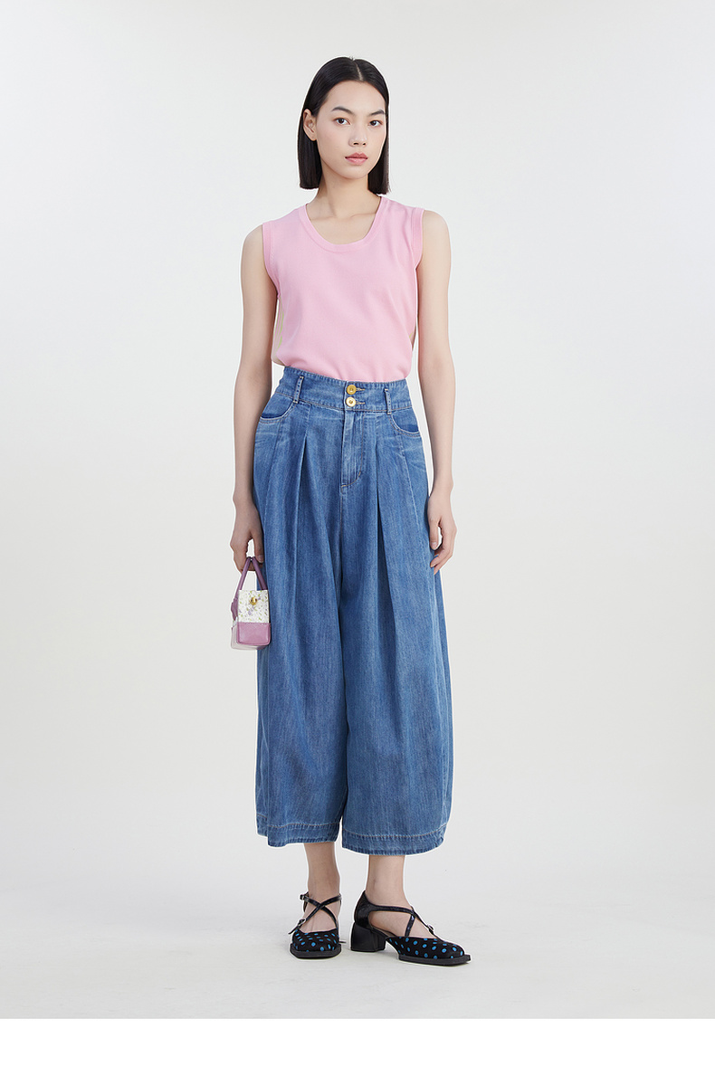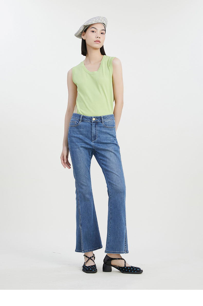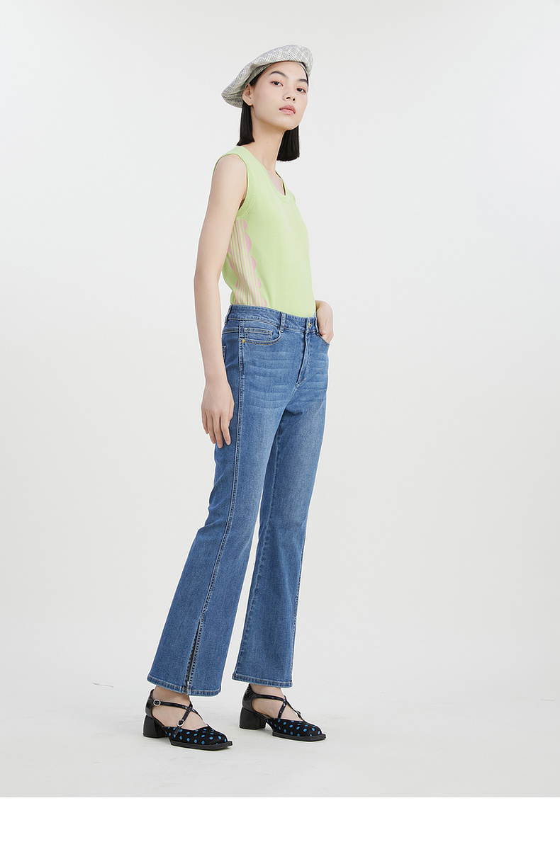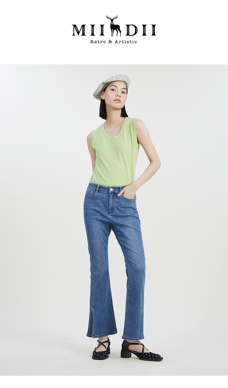 谜底圆领套头针织衫女2023夏新款百搭修身针织上衣无袖232MZ0866