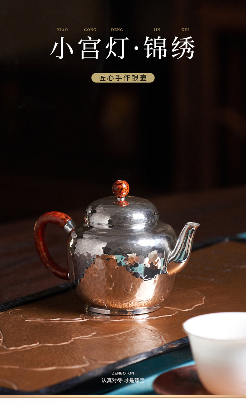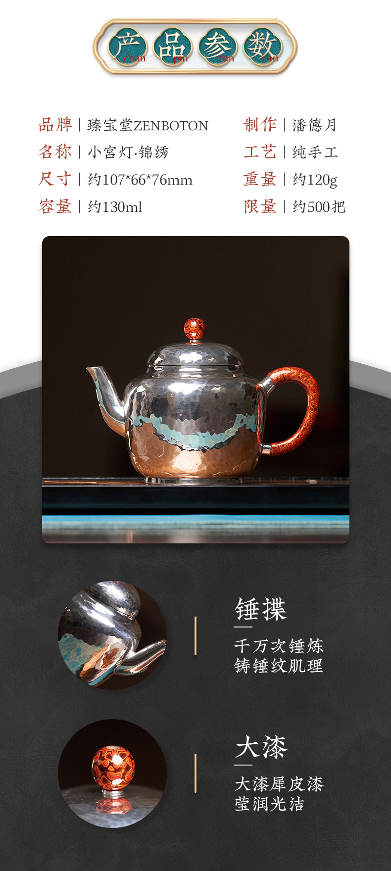 臻宝堂-小宫灯(锦绣)银壶(130ml)样品