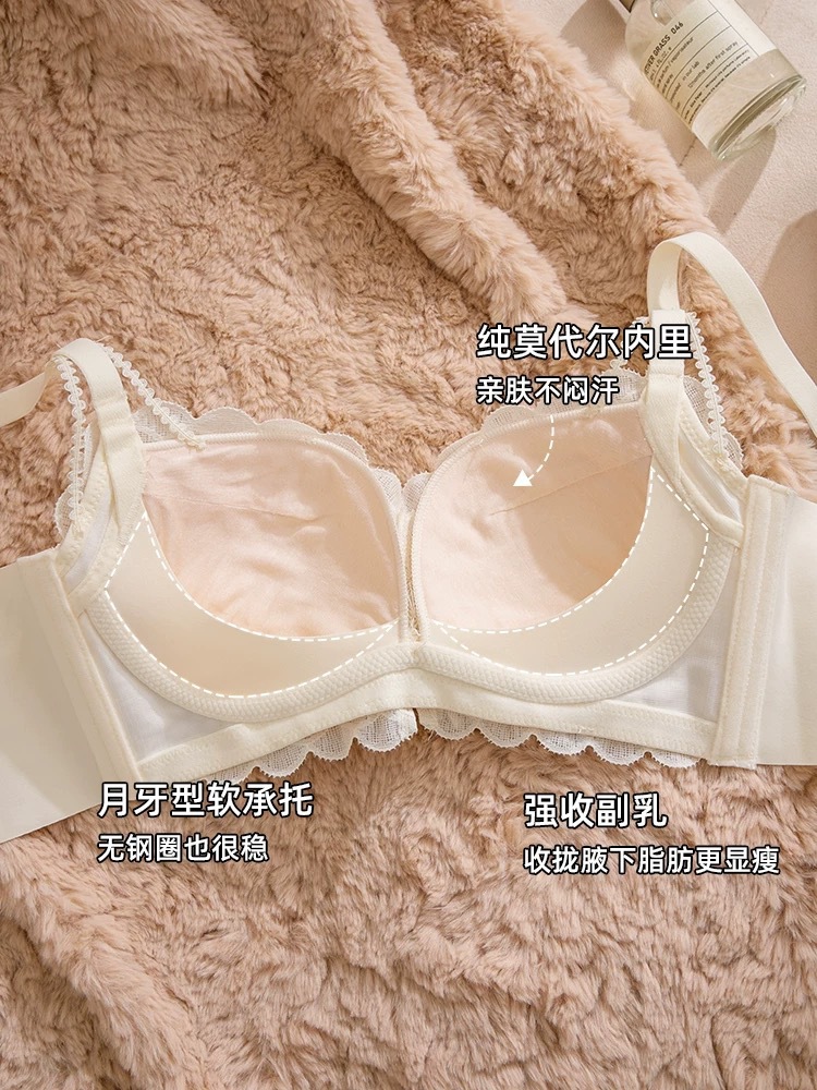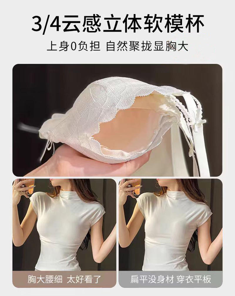 新款无痕内衣女小胸聚拢无钢圈收副乳调整型性感蕾丝本命年文胸罩