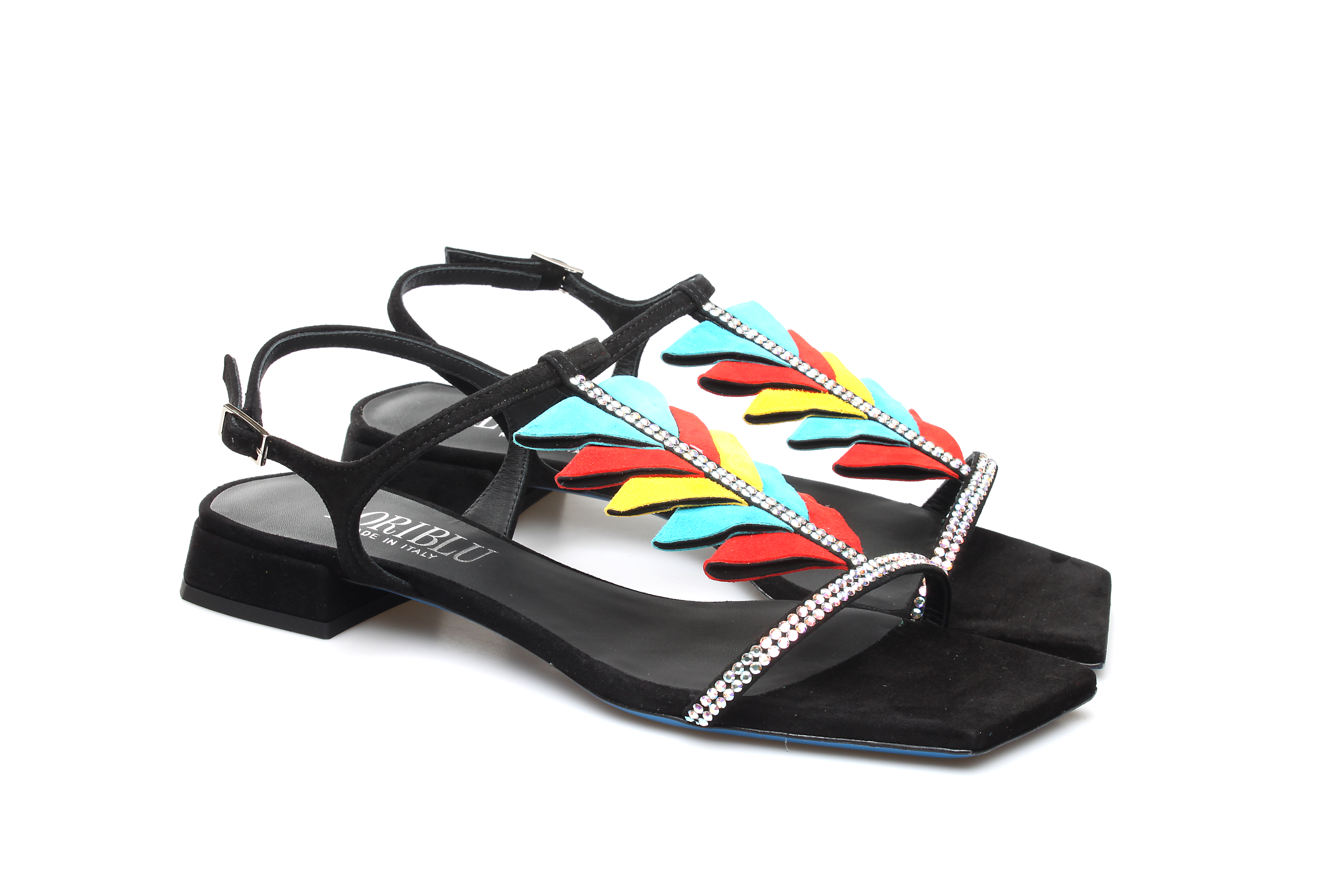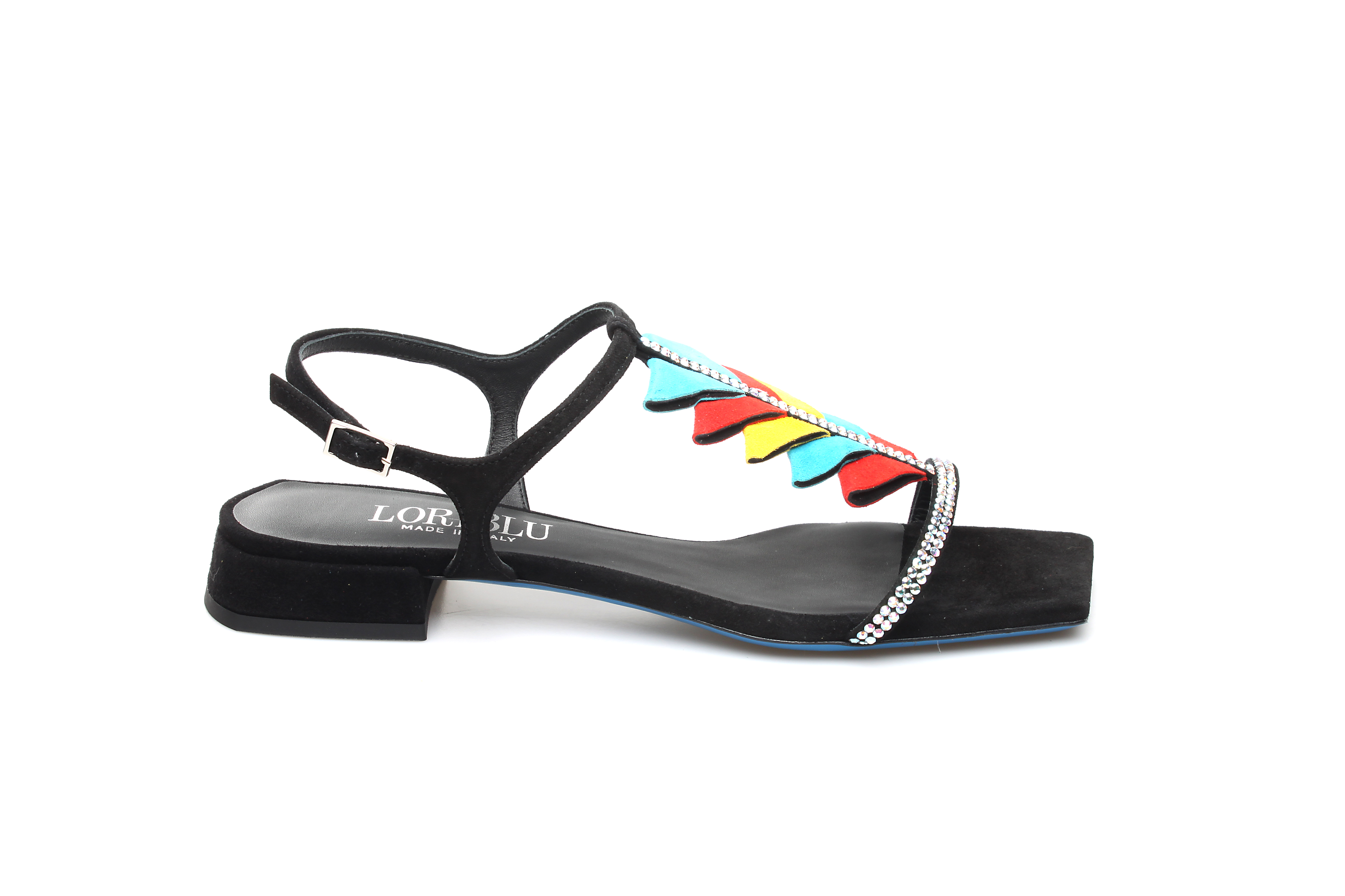 豪麟名鞋奥莱LORIBLU女鞋凉鞋羊反绒面革+施华洛世奇LR05309L黑色 原价5260元