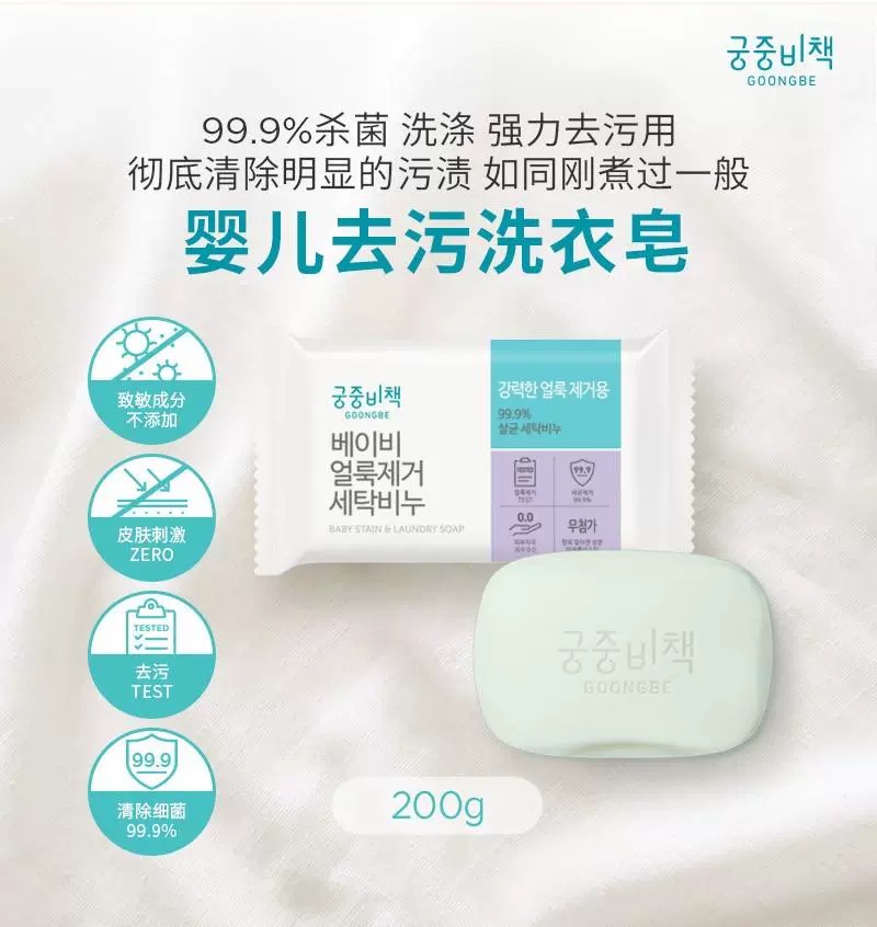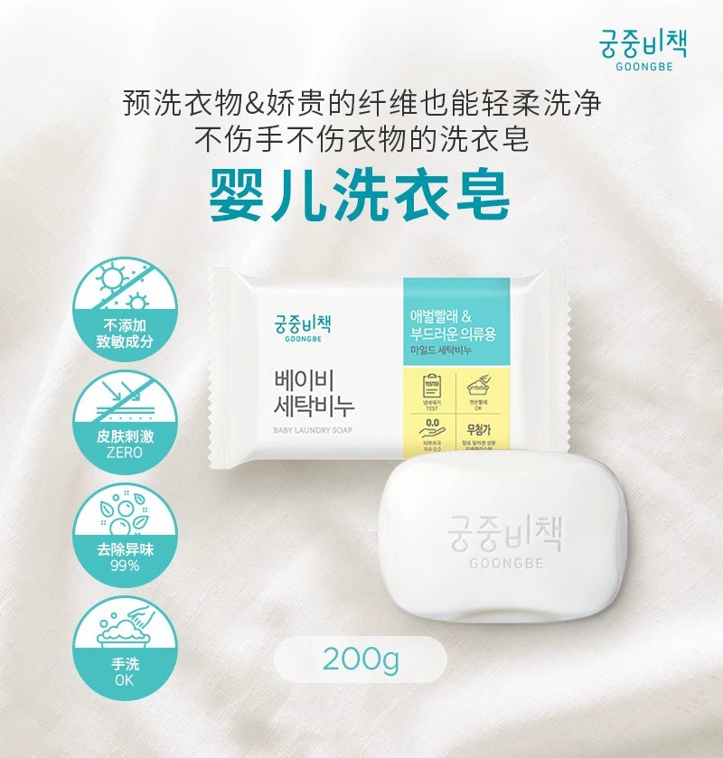 【中欧班列4块】韩国宫中秘策婴儿洗衣皂 原装进口宝宝衣物洗衣皂清洁皂 200g/块WHBX