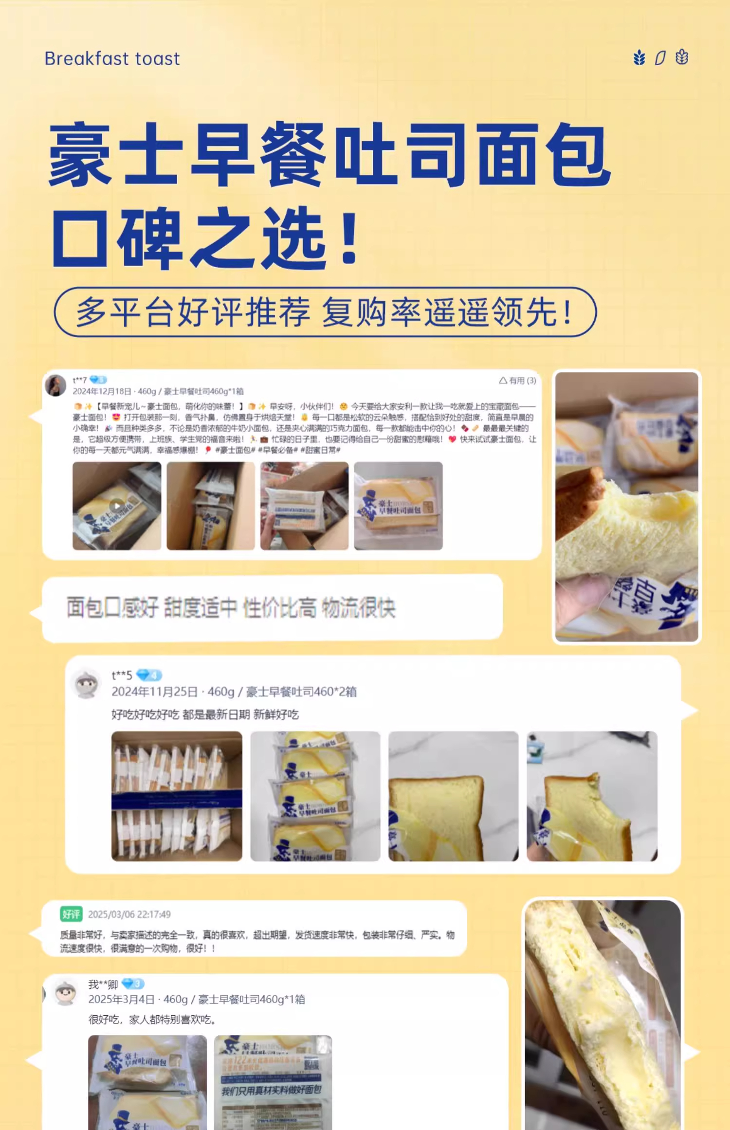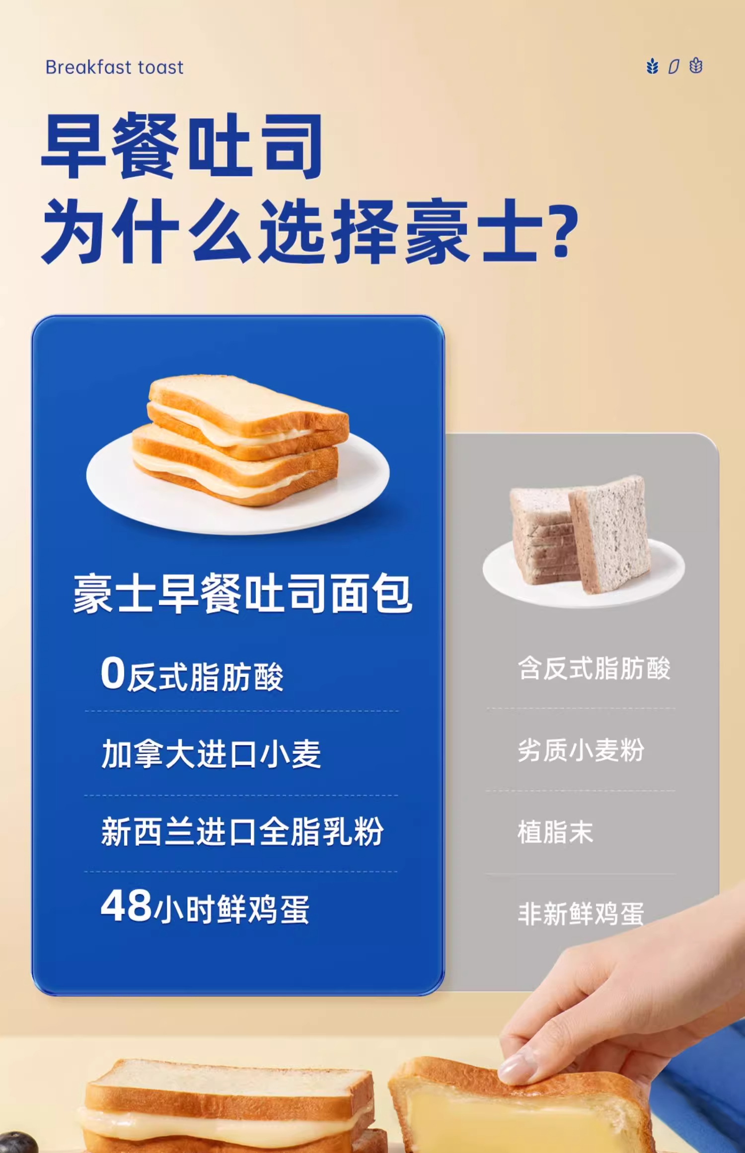 豪士早餐吐司面包|5 层松软口感,麦香浓郁到唤醒清晨味蕾
