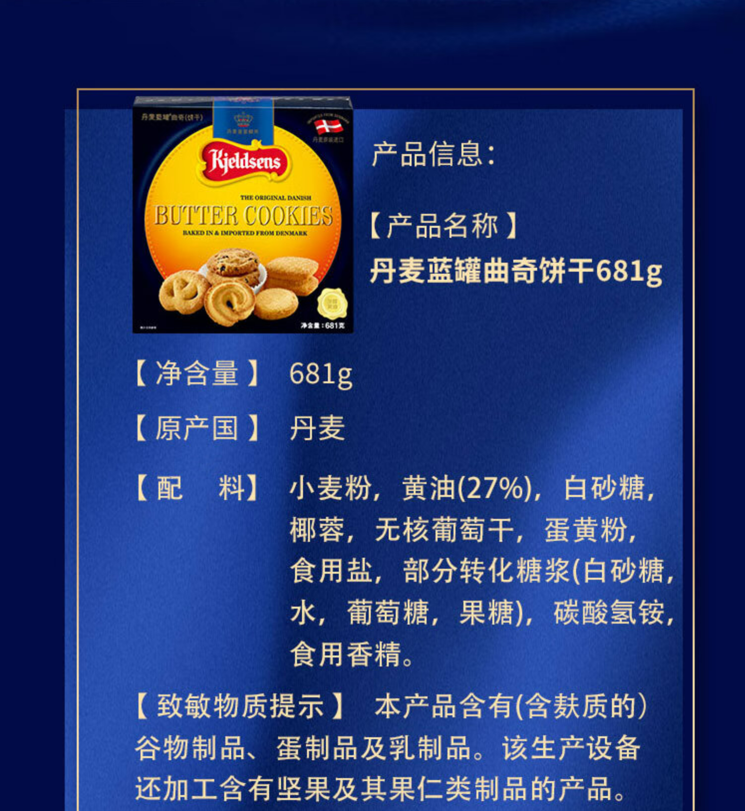 蓝罐(Kjeldsens)曲奇饼干礼盒 681g 丹麦原装进口 休闲零食
