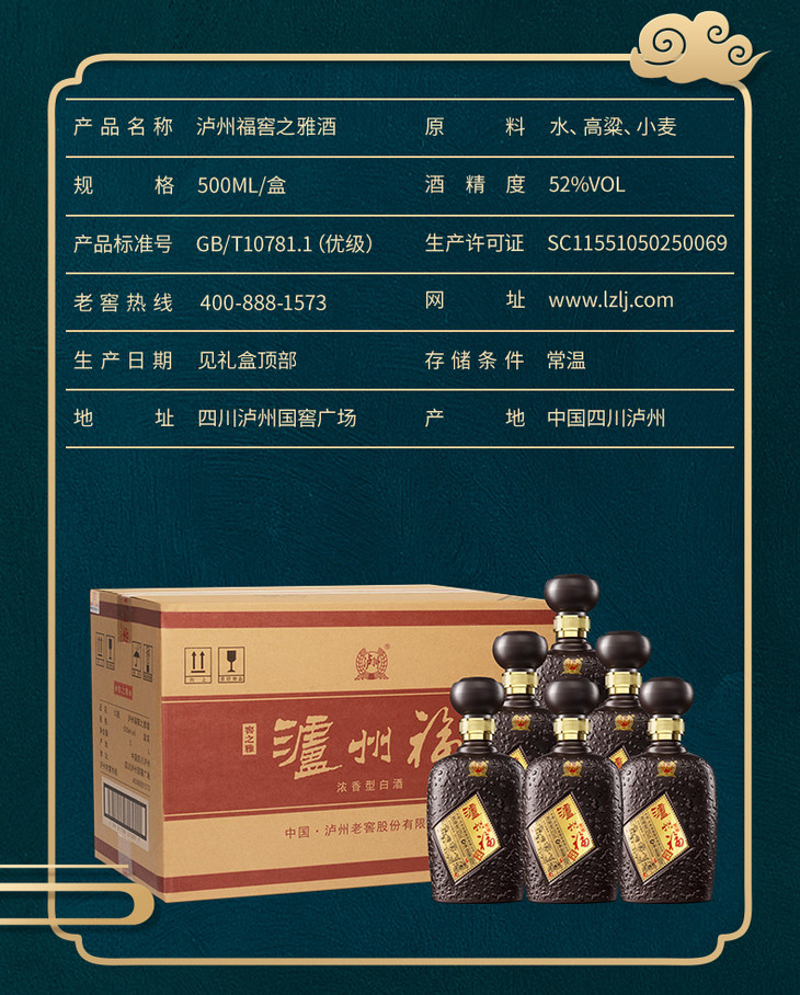 【周周薅】52度泸州福窖之雅500ml*6 泸州老窖官方旗舰店