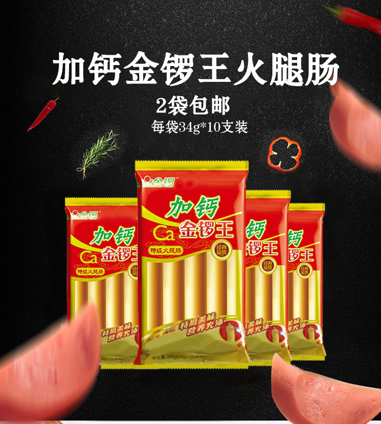 金锣加钙王火腿肠 香肠零食方便速食配方便面手抓饼零食 2包包邮