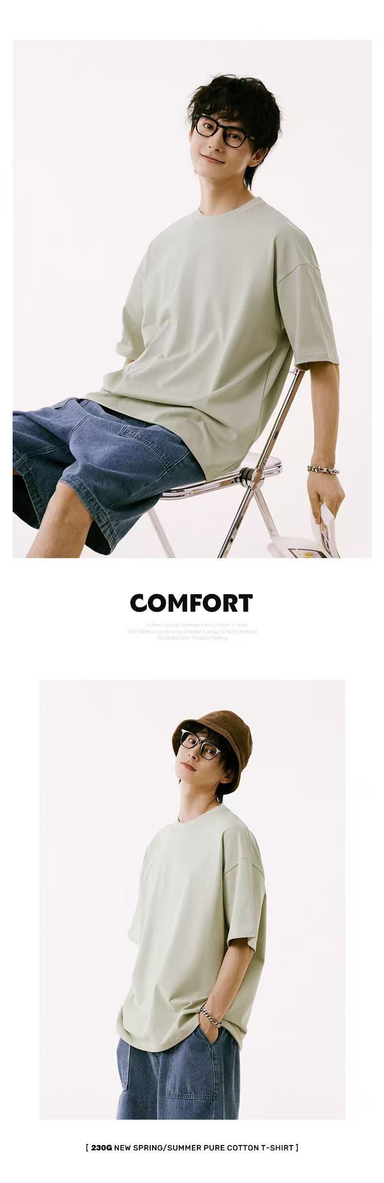 【夏季特卖,特惠3件装】【拍一件不发, 选3件加入购物车自动减】夏季230g短袖T恤男女同款纯棉圆领宽松百搭叠穿上衣休闲情侣打底衫