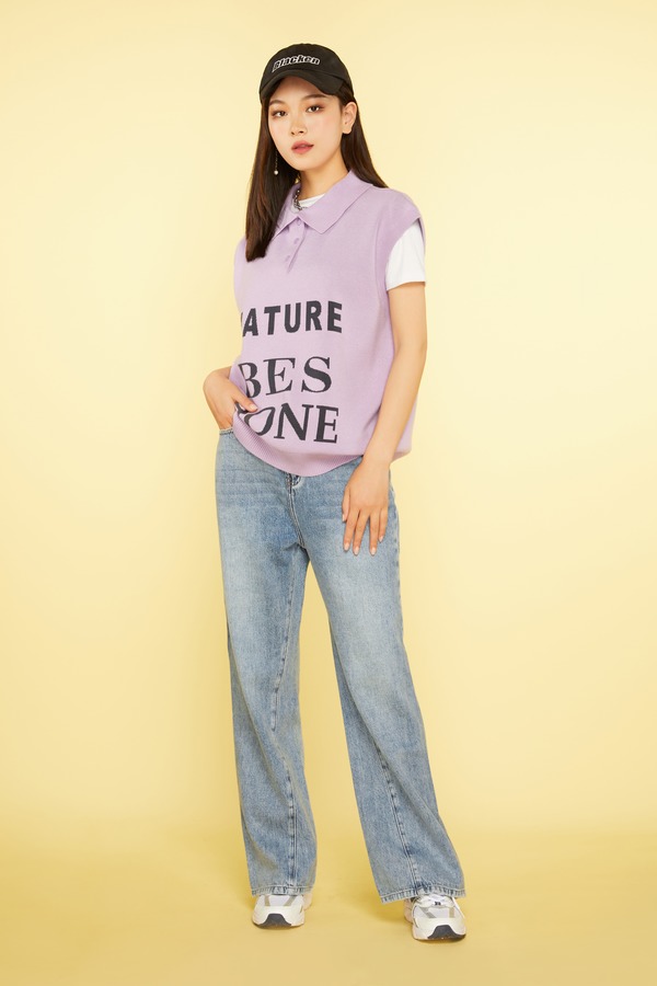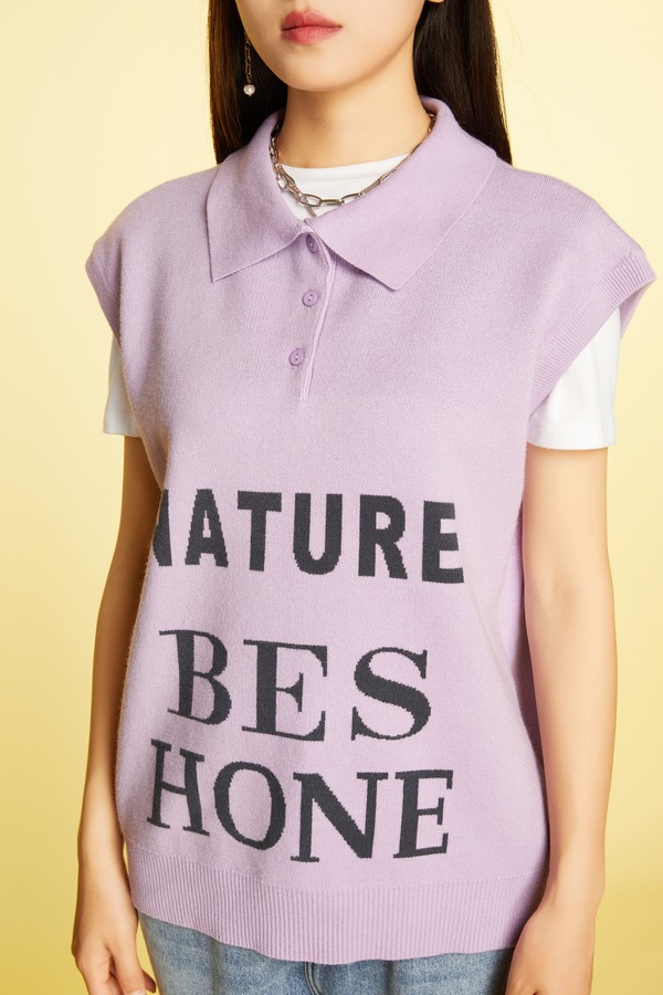Stay2Weeks 字母图案polo领时尚针织上衣 11496