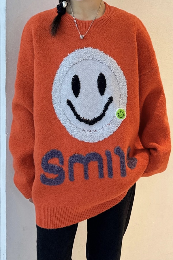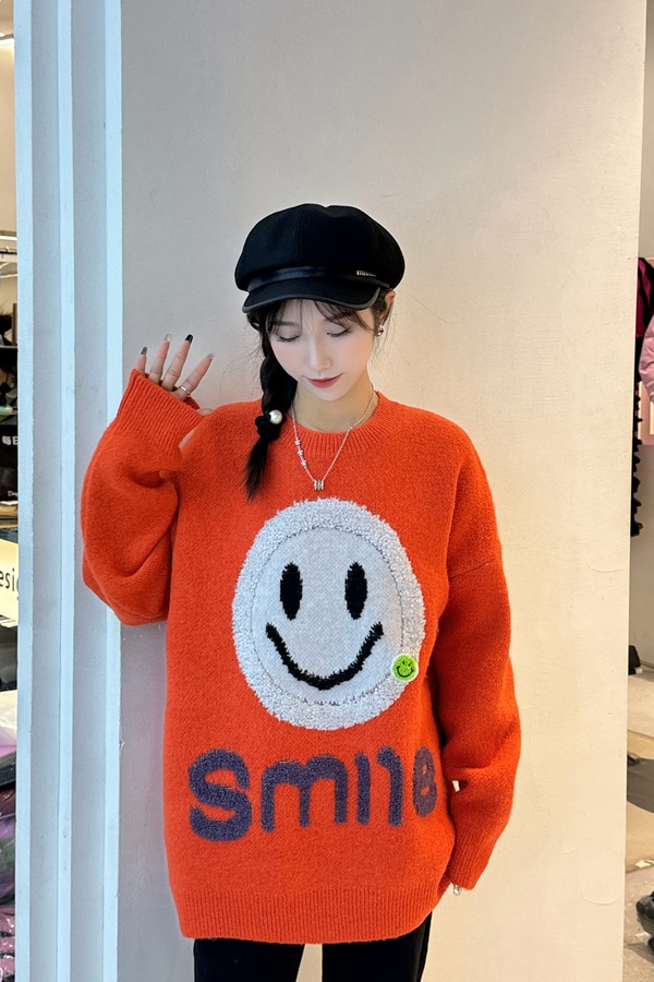 HAYES 橙色笑脸图案针织上衣 19763