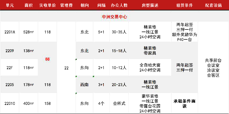 单位情况: 2+1隔间,全自动天窗,24小时空调