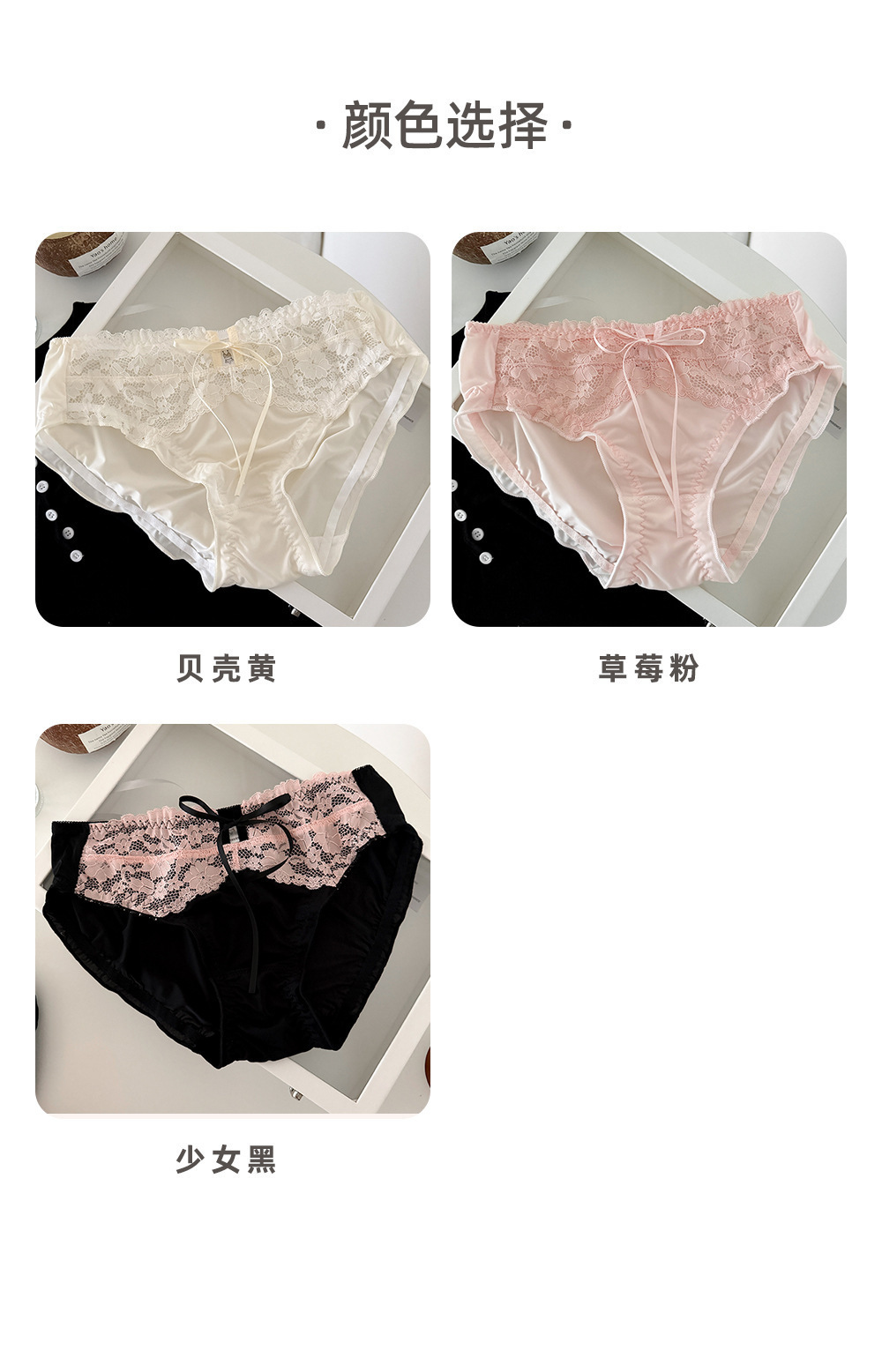 【惊爆价!抢3条!】甜美风纯欲蕾丝边女士内裤,纯棉裆抑菌 +缎面性感设计蕾丝边,舒适又撩人