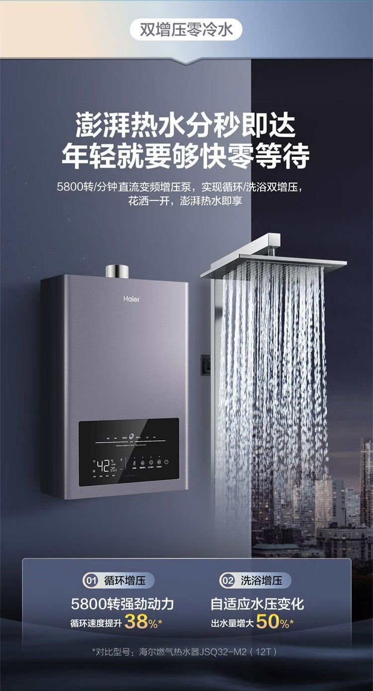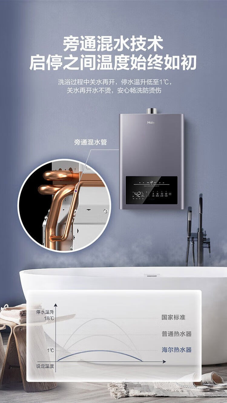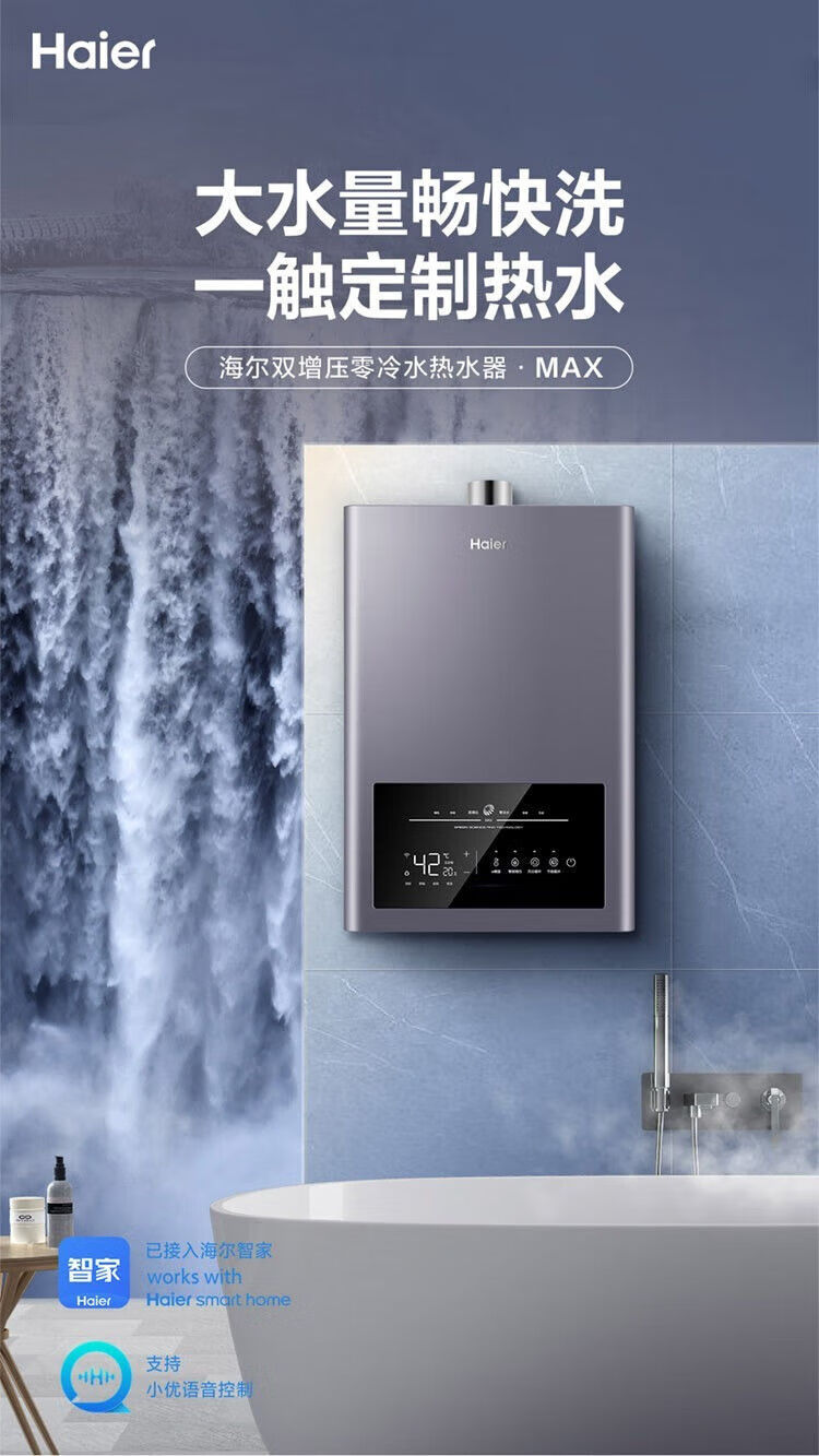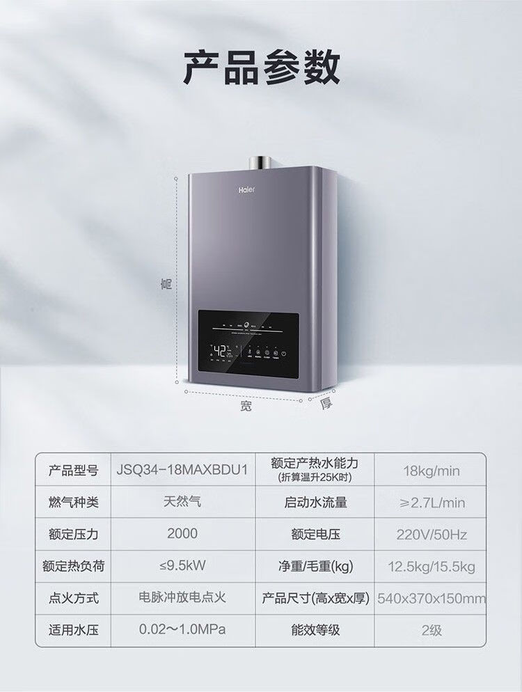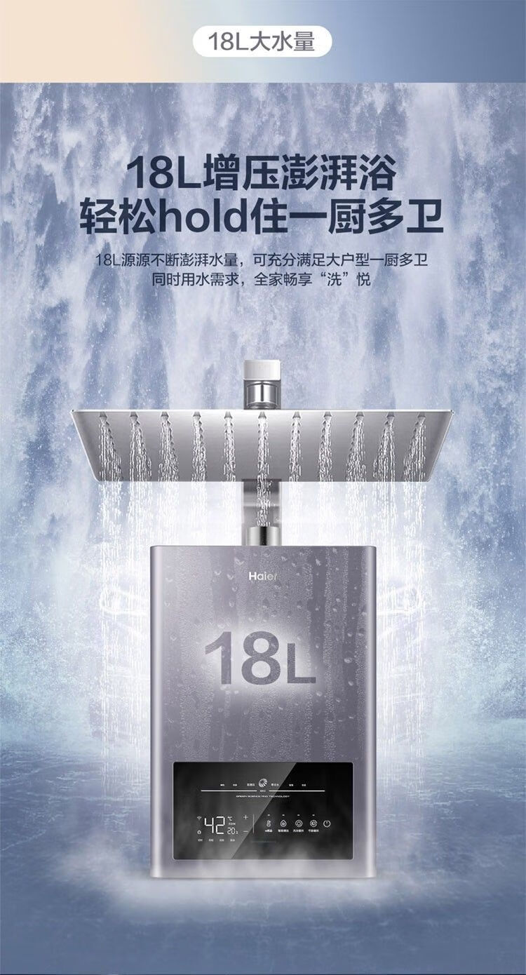 海尔18L天然气热水器JSQ34-18MAXBDU1增压零冷水磁化净水水气双调恒温