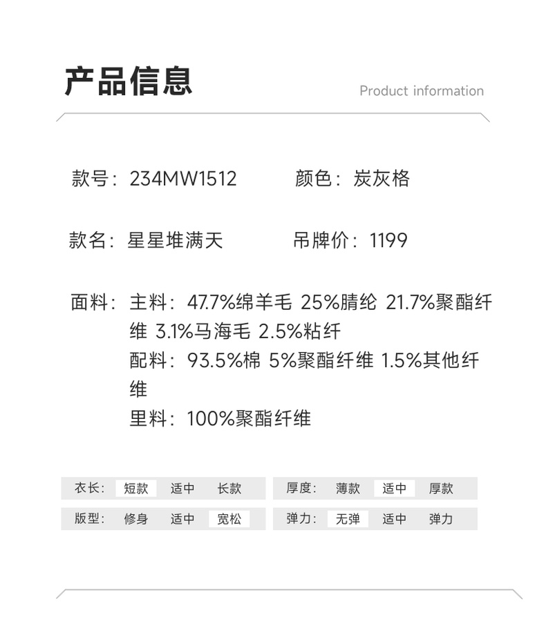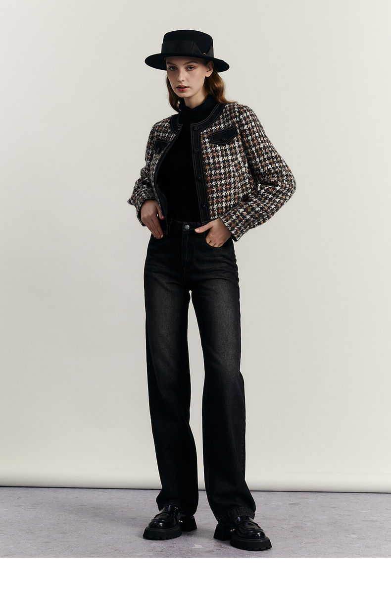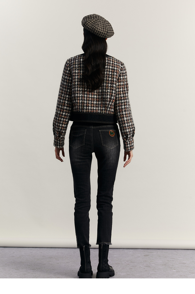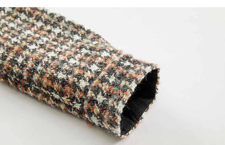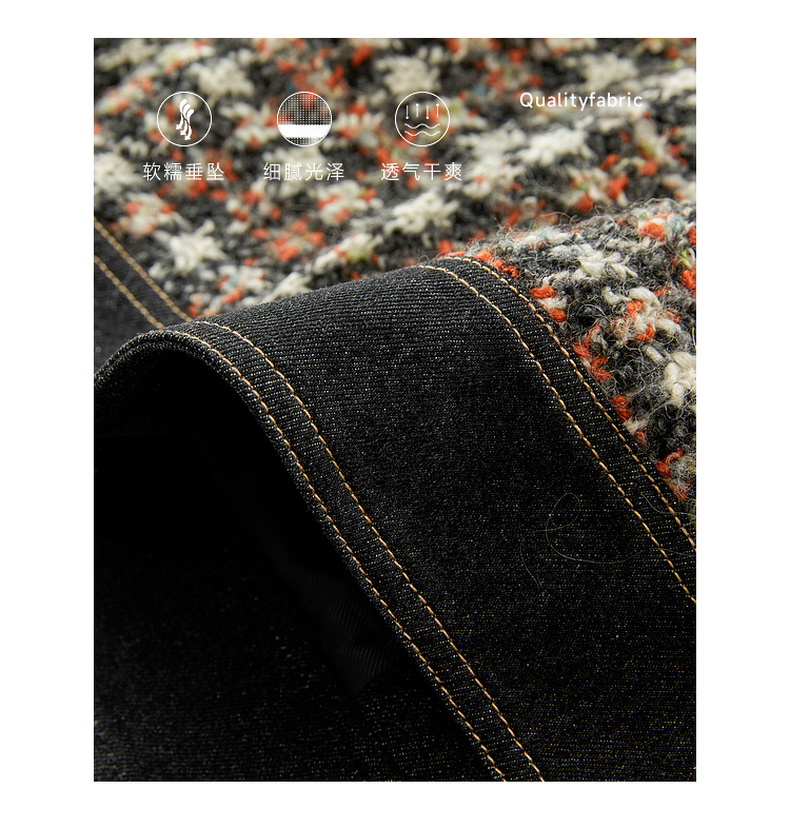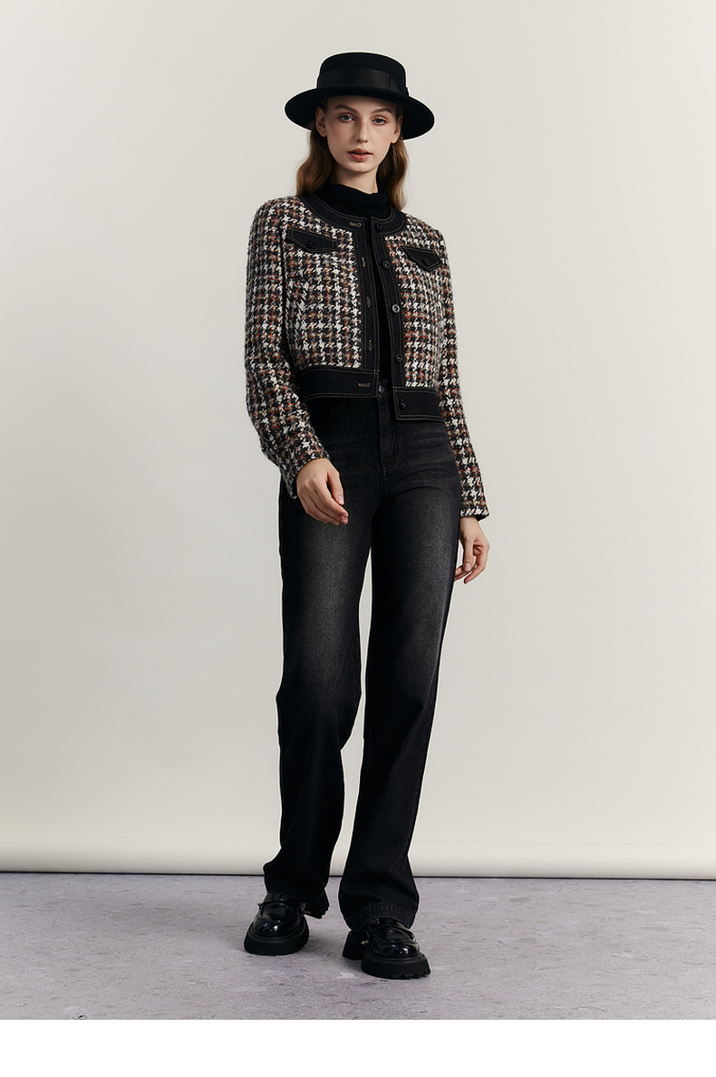 谜底小香风毛呢外套女2023冬季新品时尚拼接短款粗花呢234MW1512