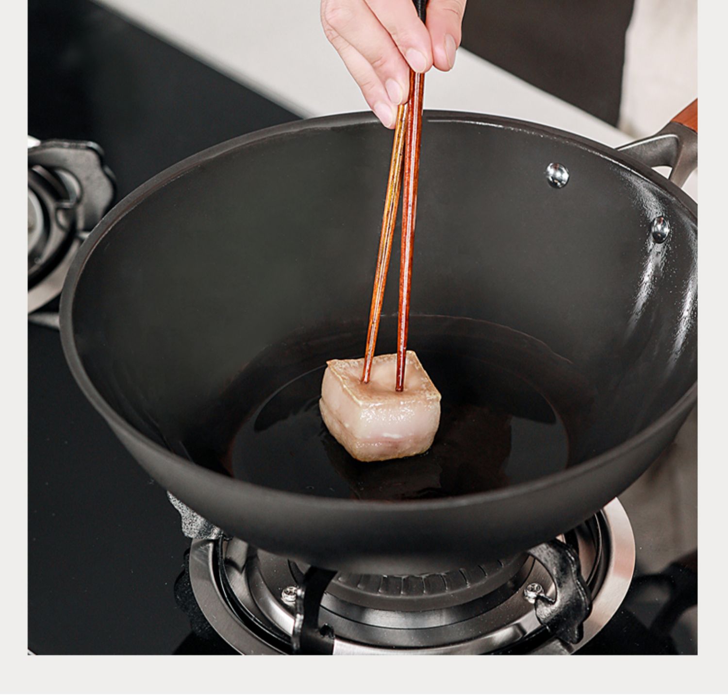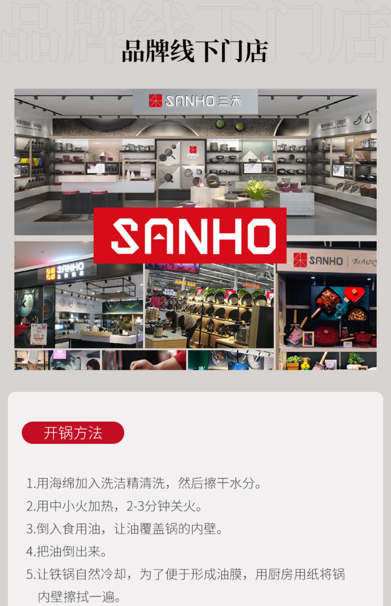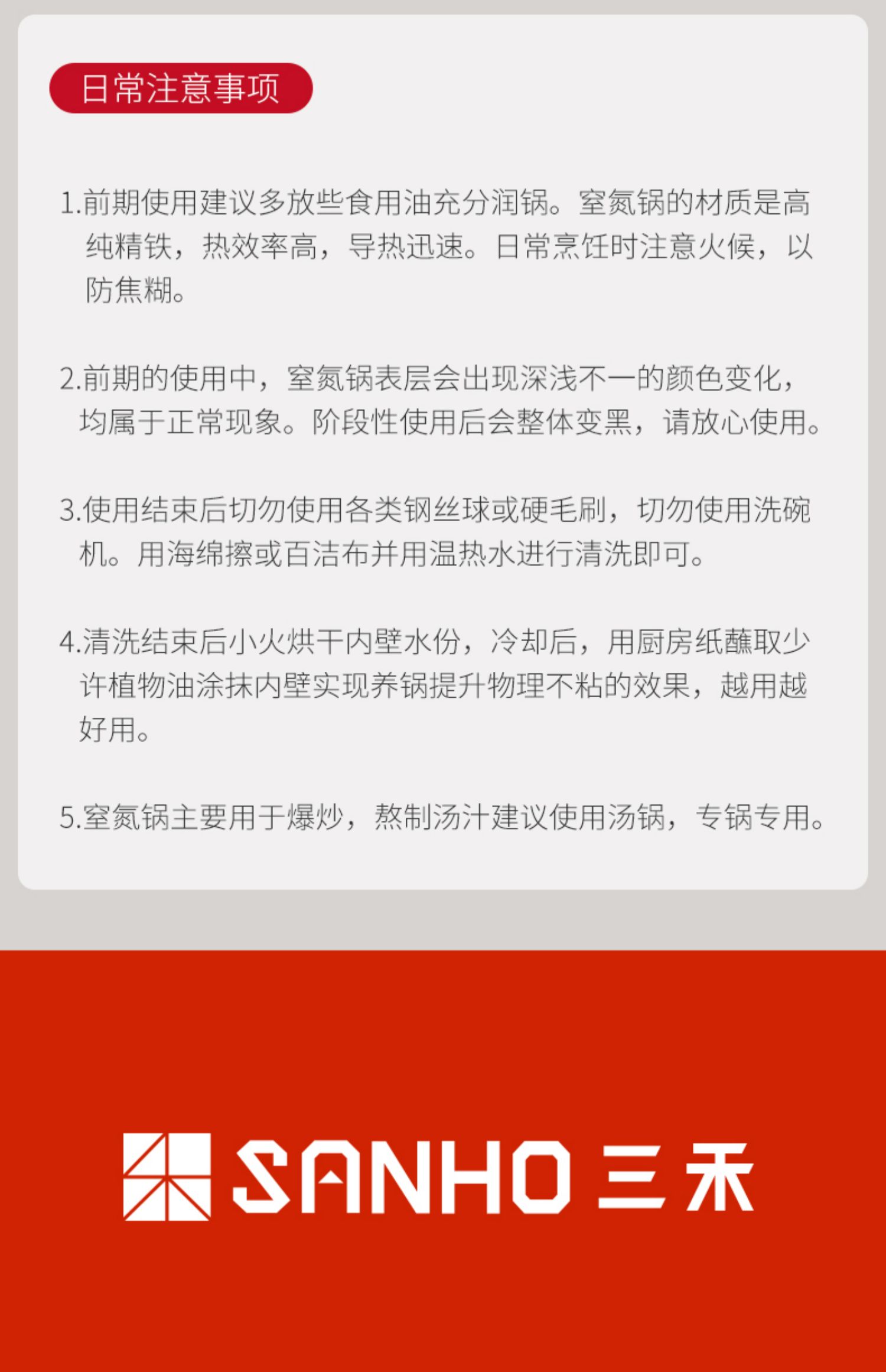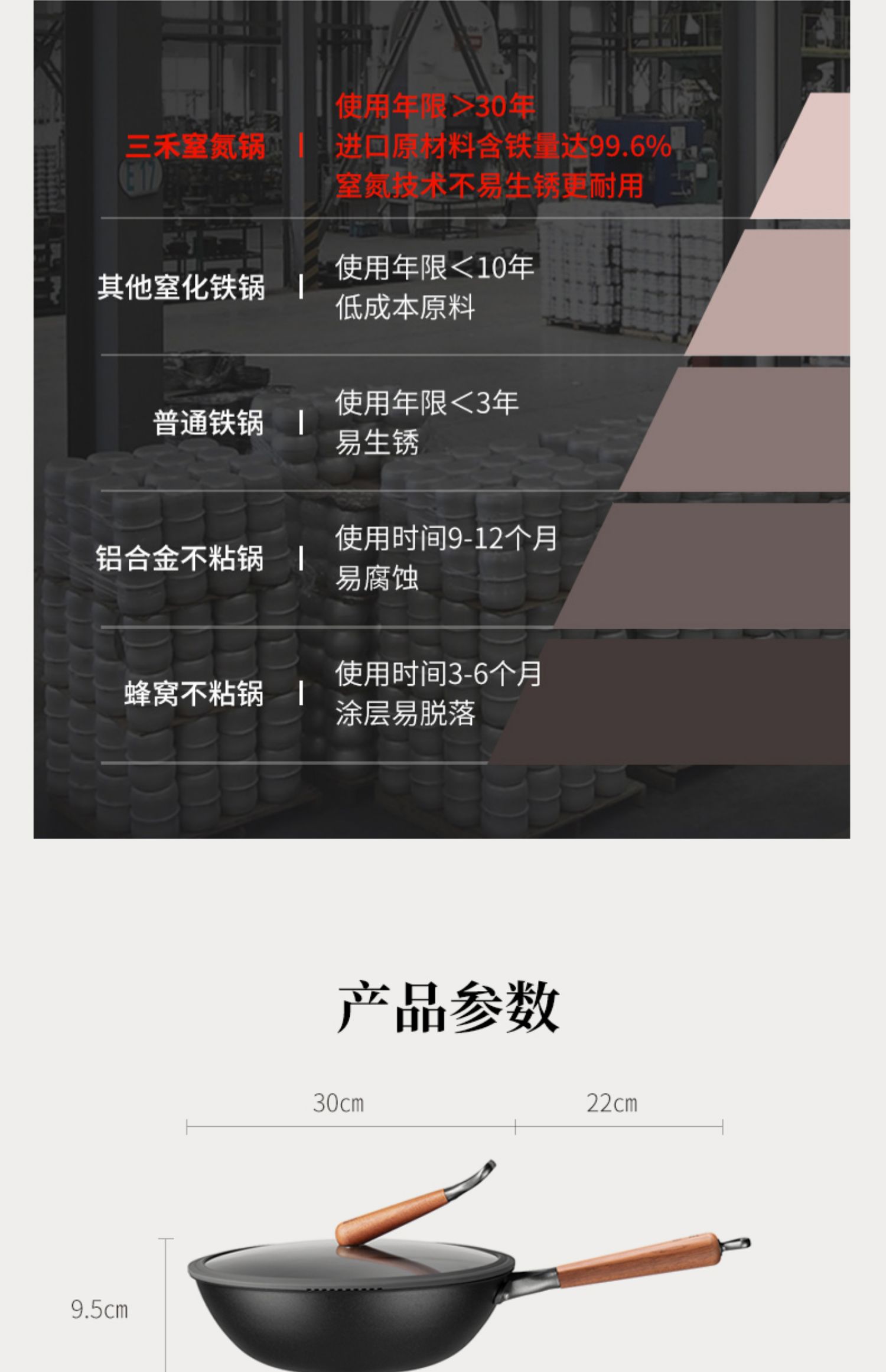 三禾窒氮轻铁锅 无涂层平底锅 燃气灶专用 老式炒菜轻铁锅 3倍防锈 不粘0油烟 轻重设计 不怕刮划 梨花木手柄