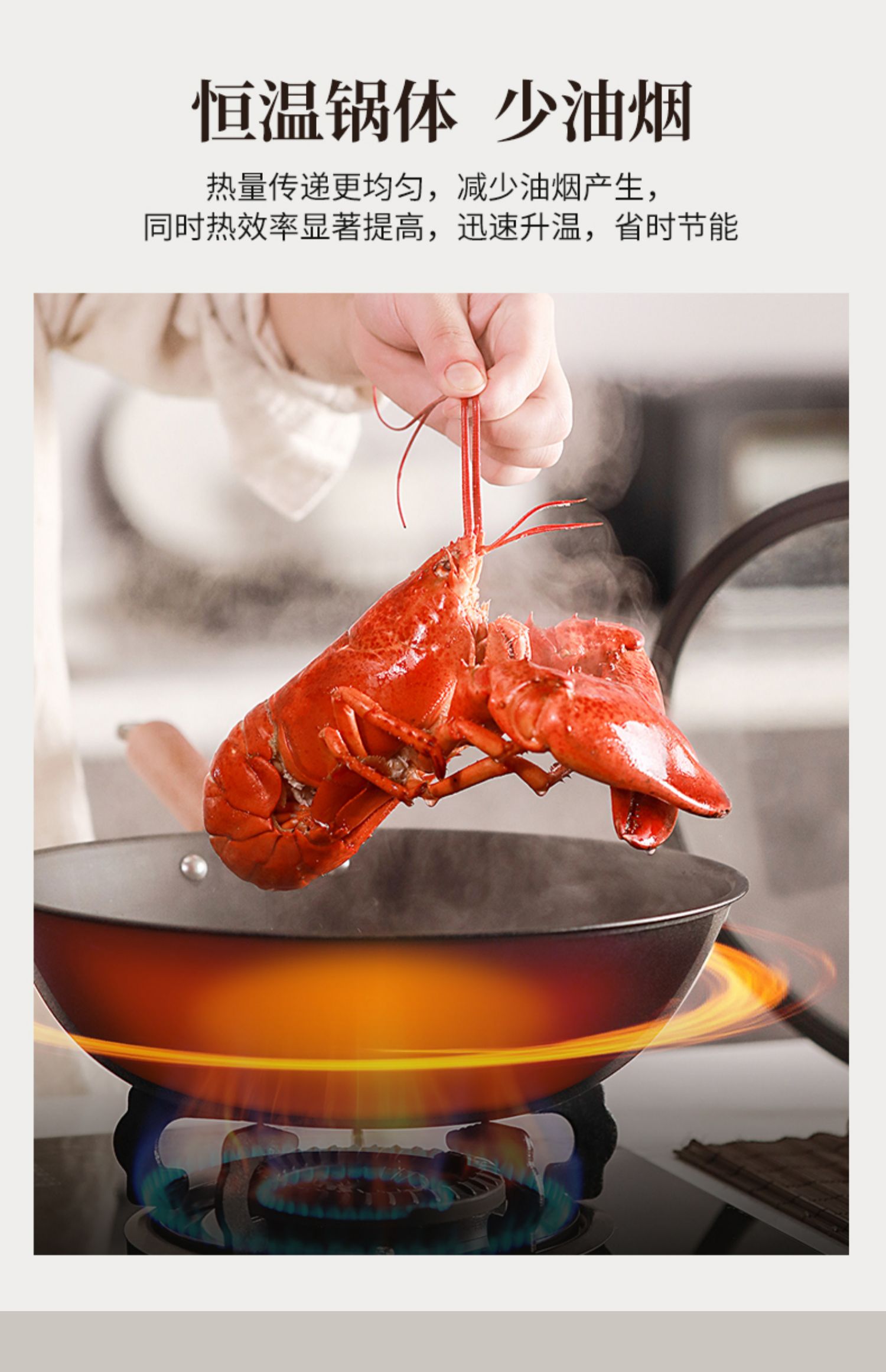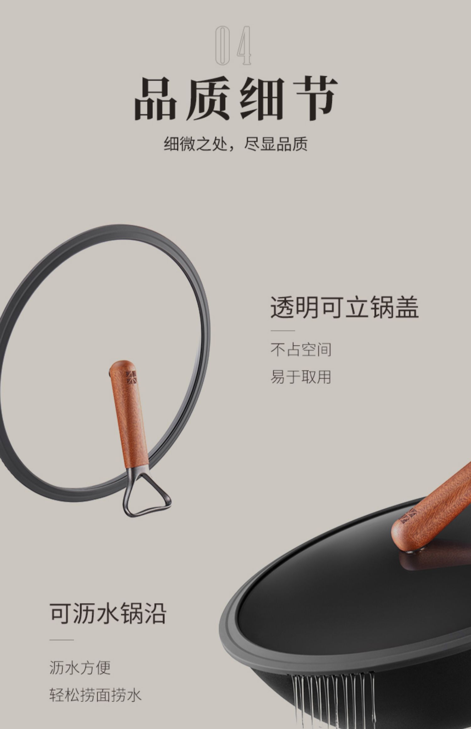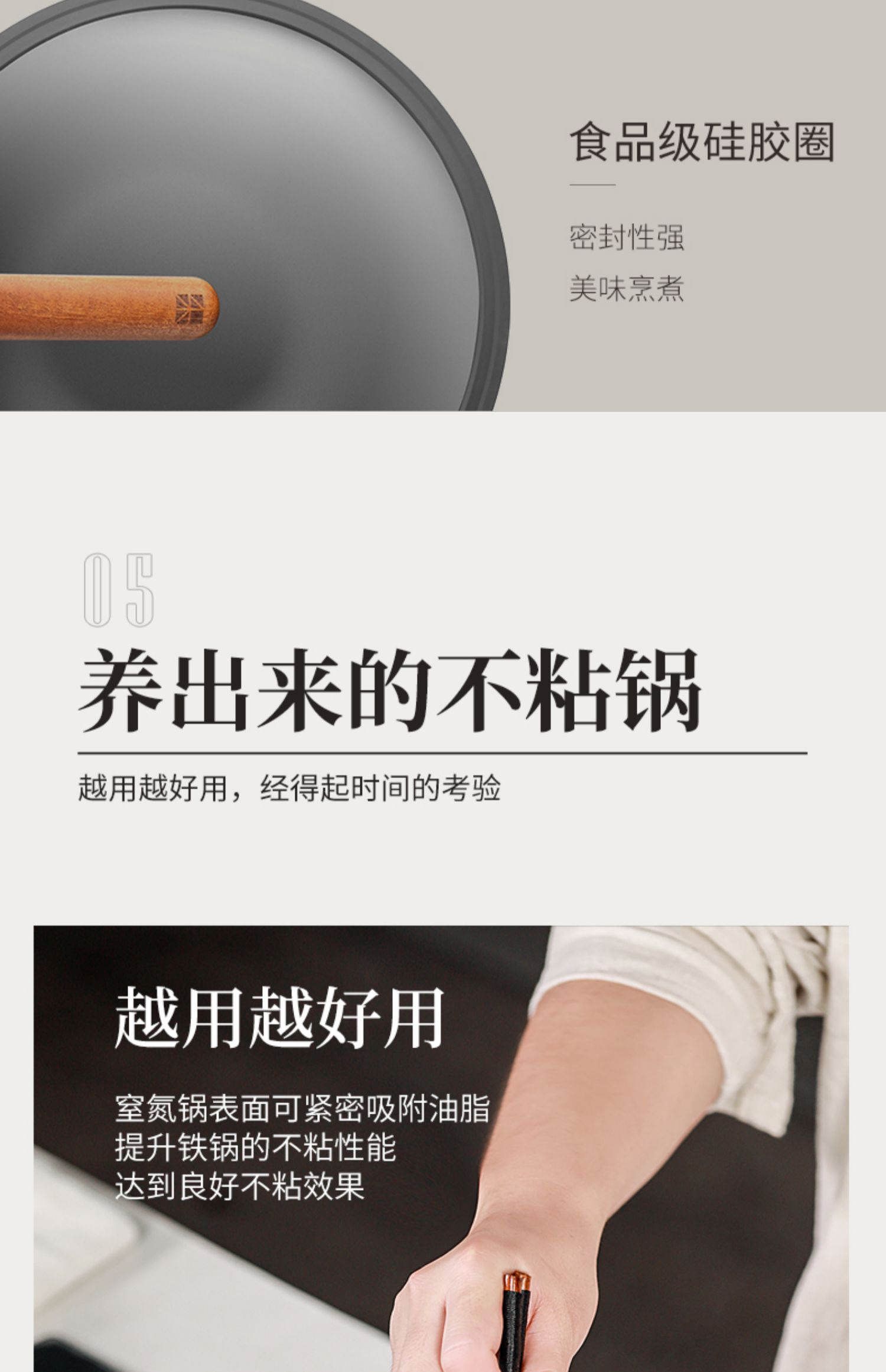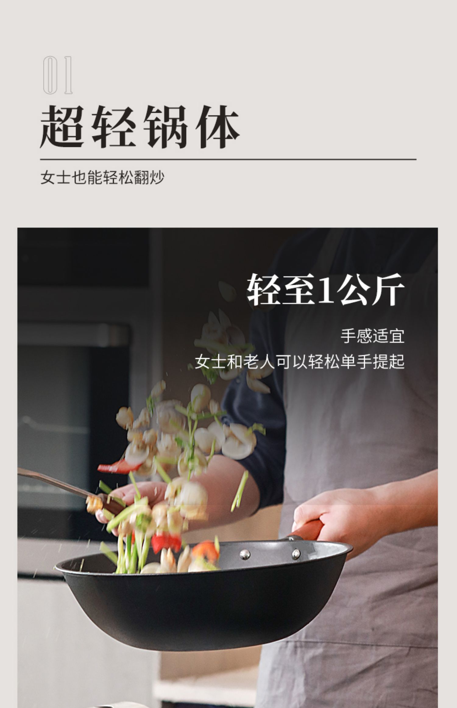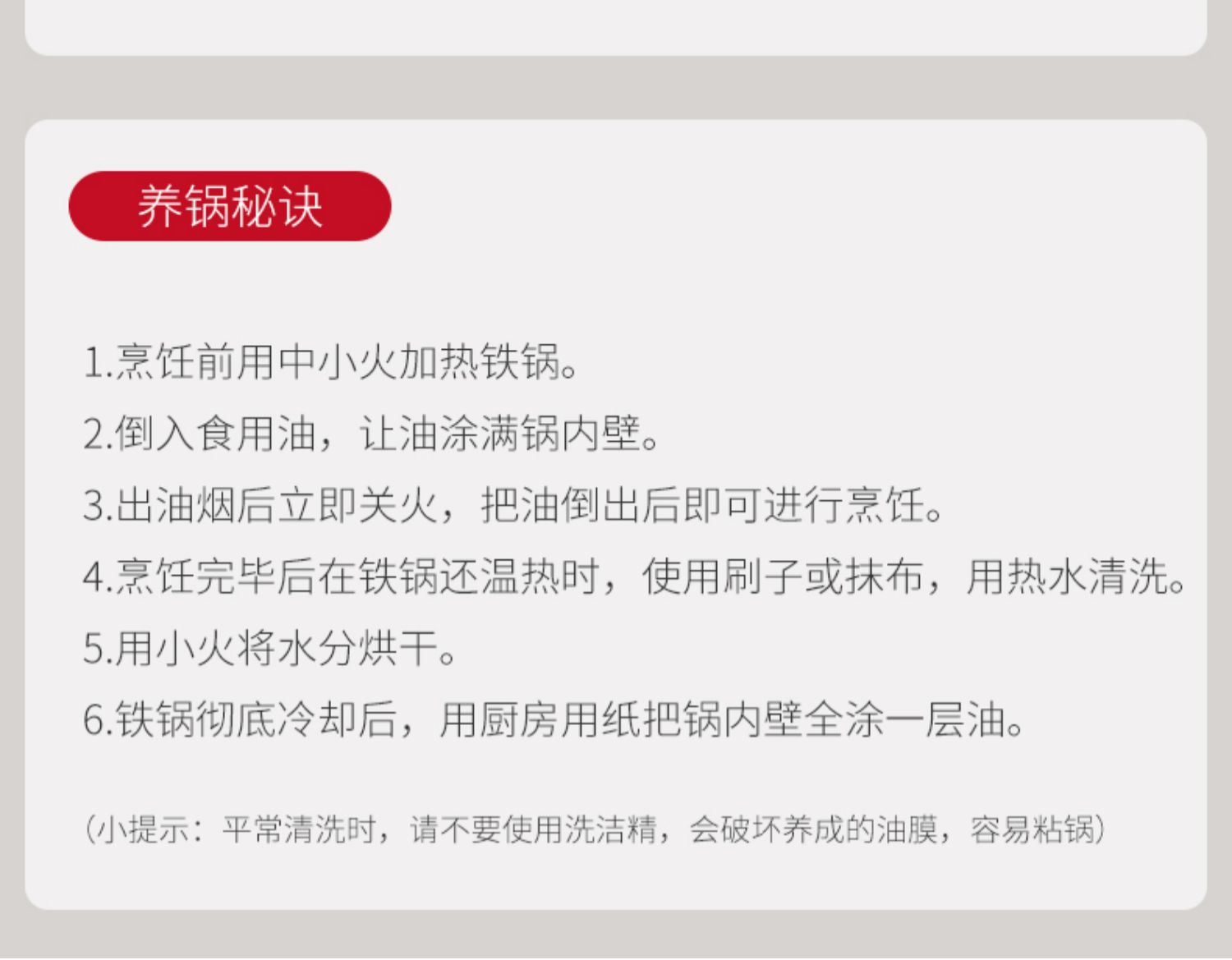 三禾窒氮轻铁锅 无涂层平底锅 燃气灶专用 老式炒菜轻铁锅 3倍防锈 不粘0油烟 轻重设计 不怕刮划 梨花木手柄