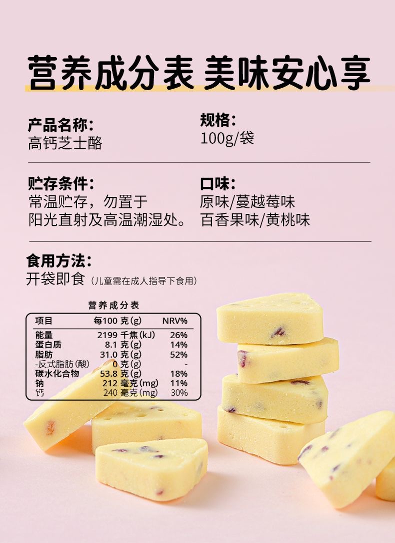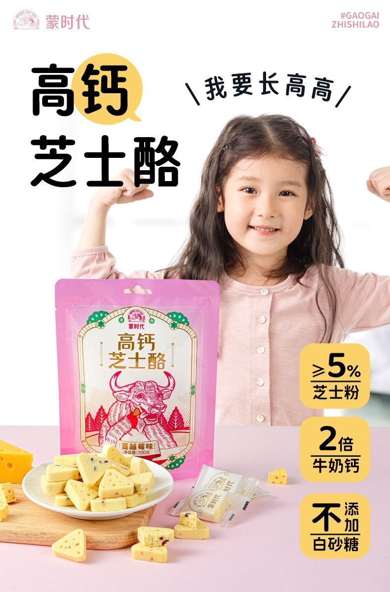 蒙时代 鲜牛奶高钙芝士奶酪块100g/袋 四种口味