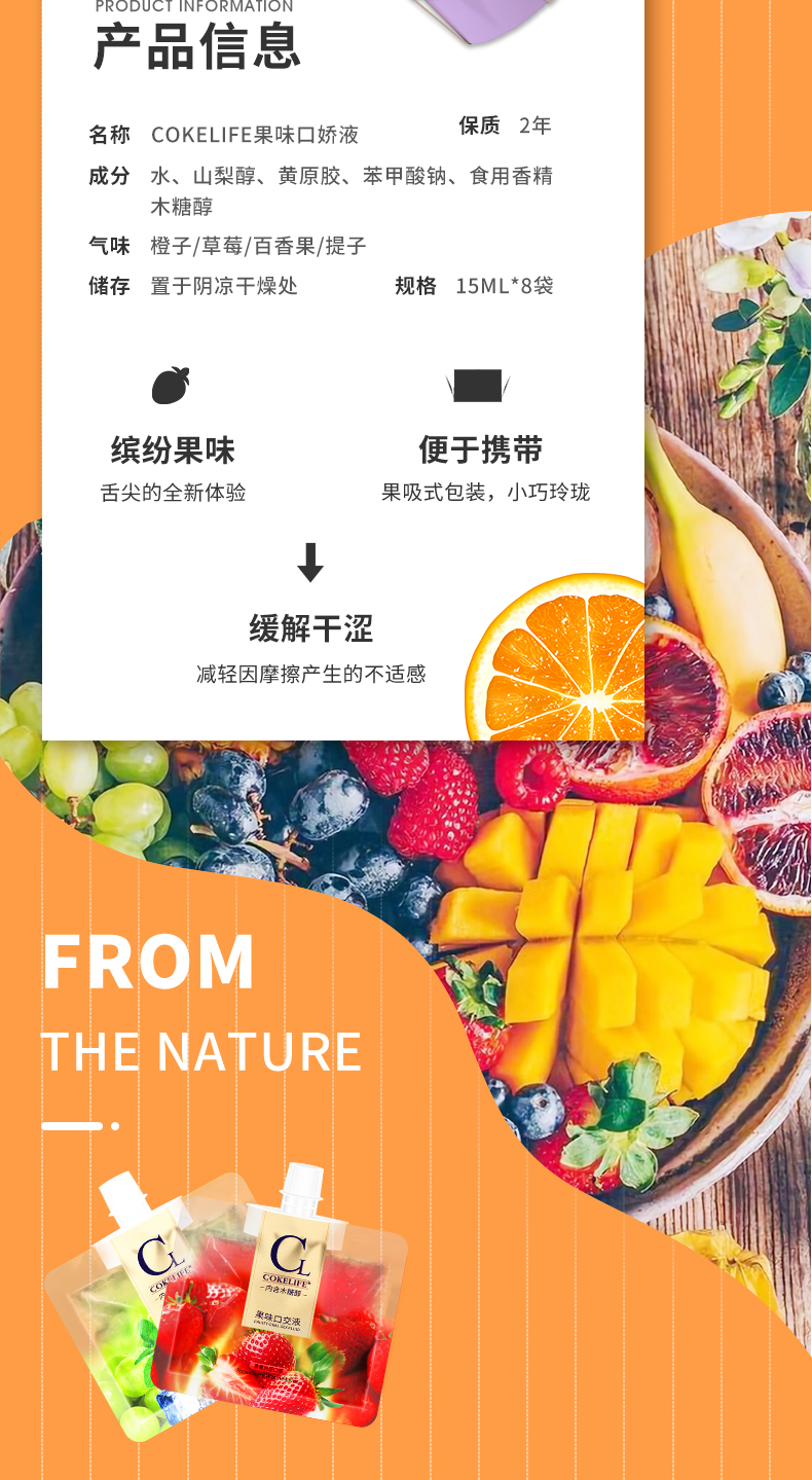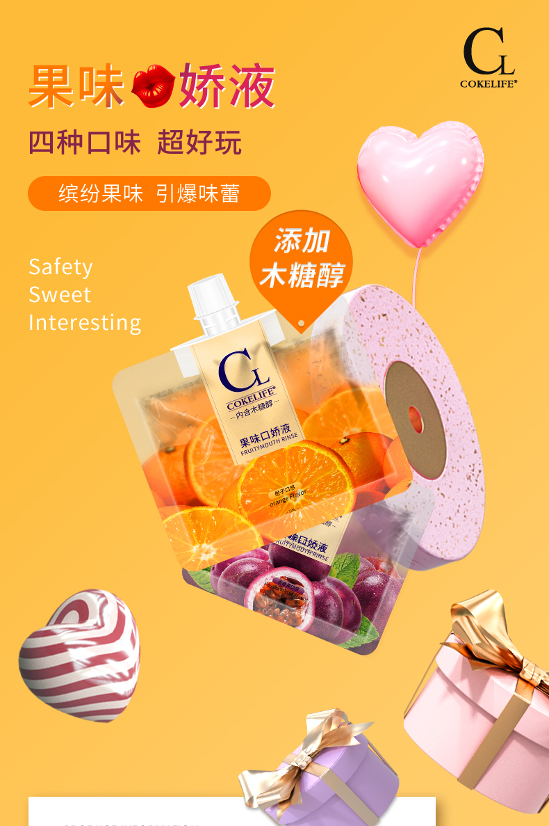 cokelife木糖醇果味口娇水小巧便携橙子/草莓/百香果/提子4种口味