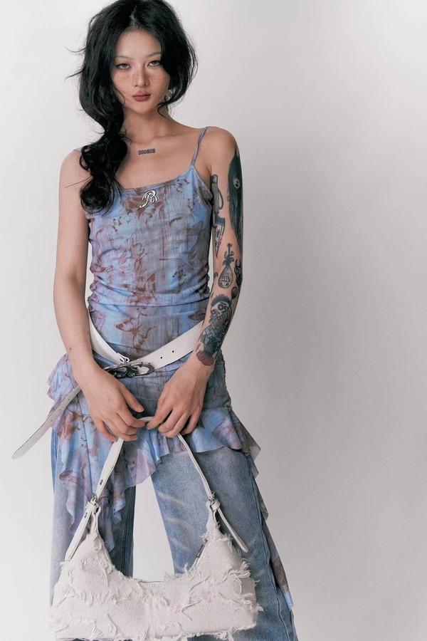 WHO KNOWS 欧美风酷辣不规则上衣 20571