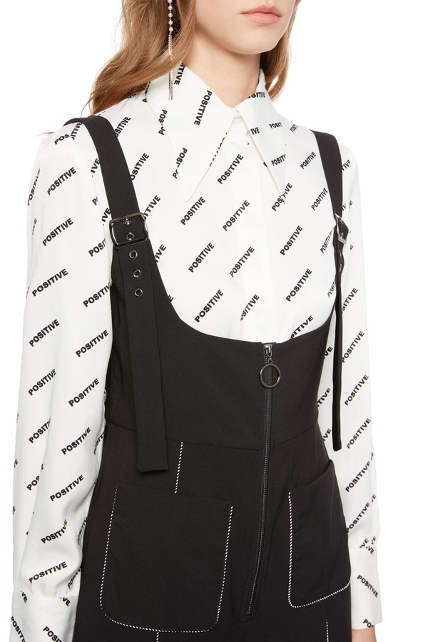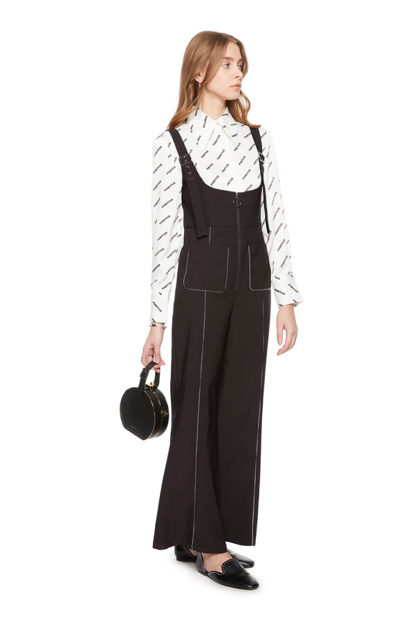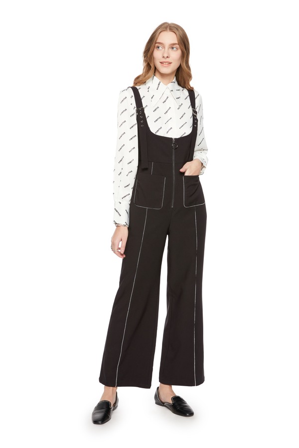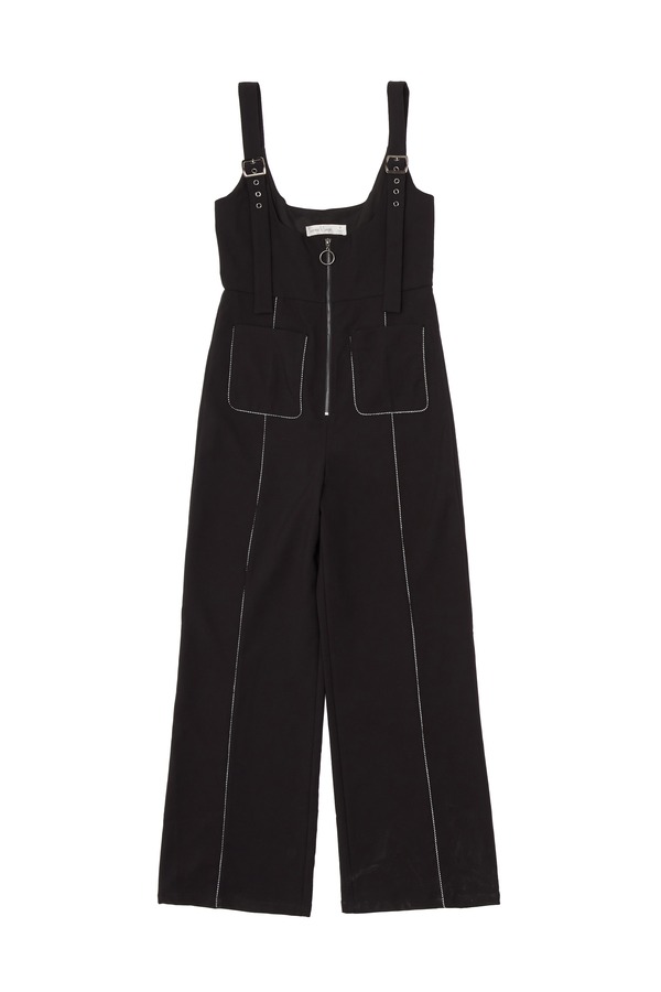 SUMMER & SAGE 明线装饰黑色背带裤 6053