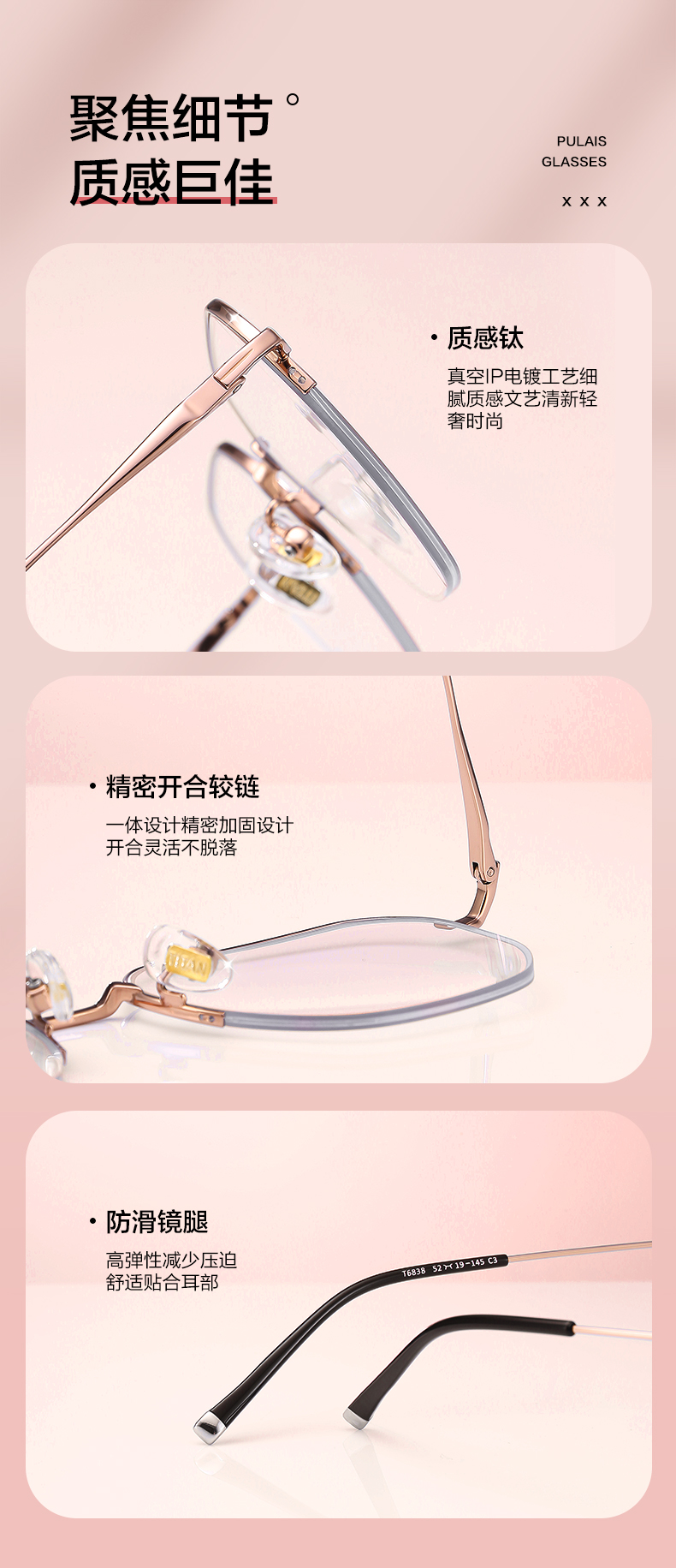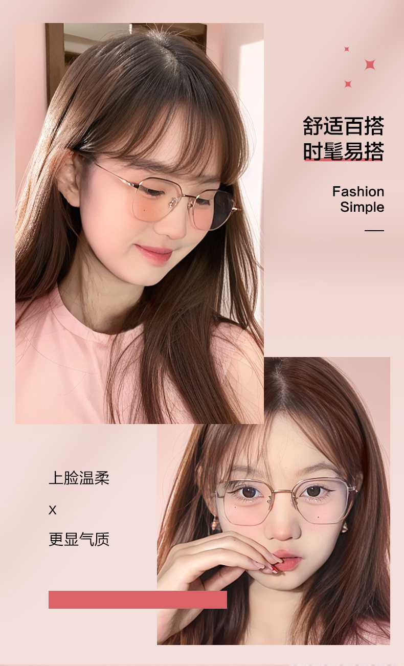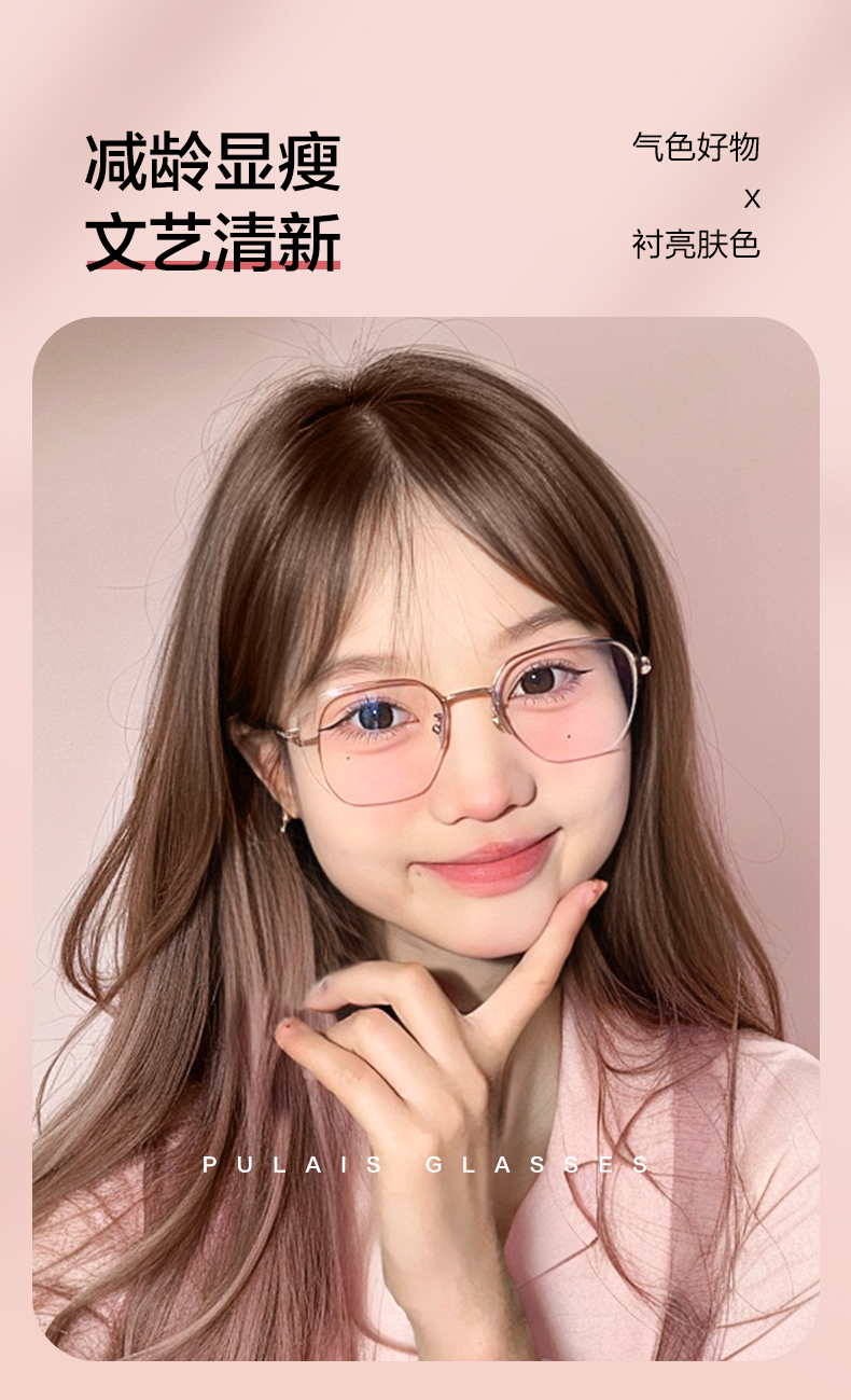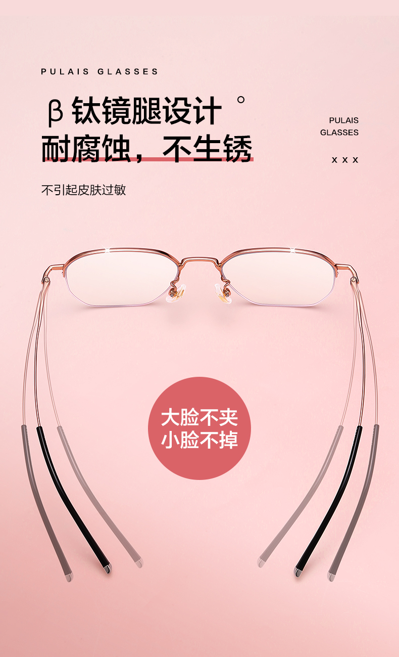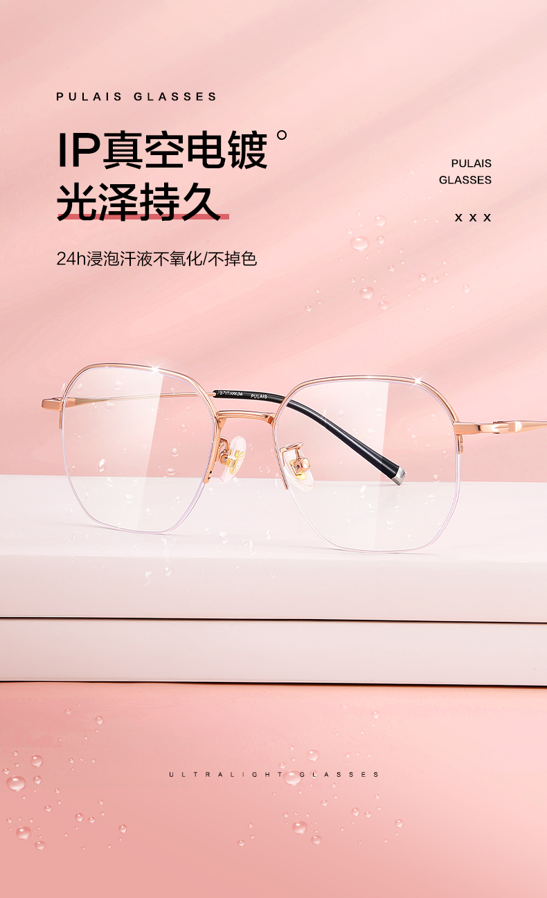 普莱斯PT11076 无框纯钛+板材 精细切割 时尚百搭不挑脸