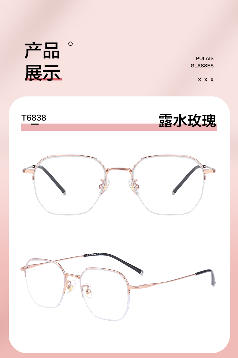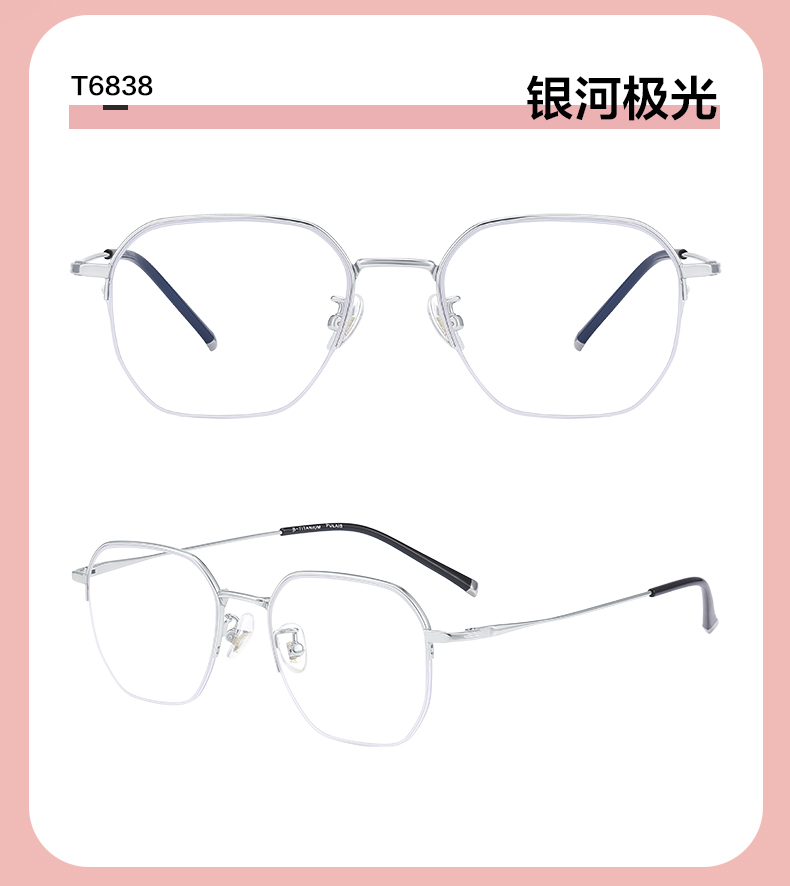 普莱斯2023年新款半框T6838 β钛+合金 多边形光学镜架