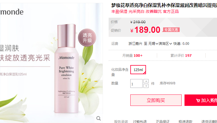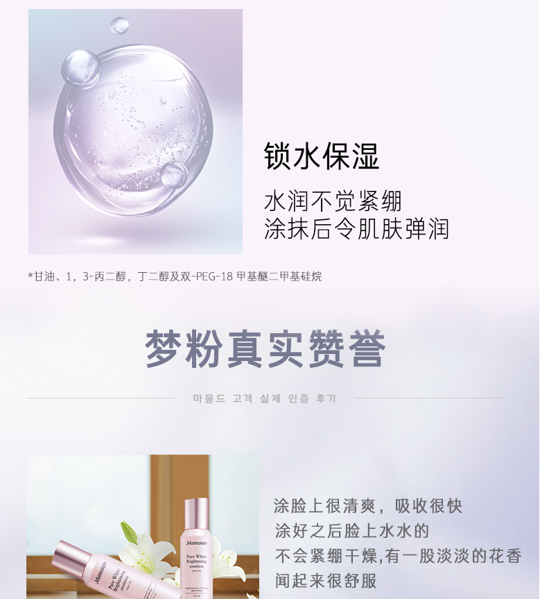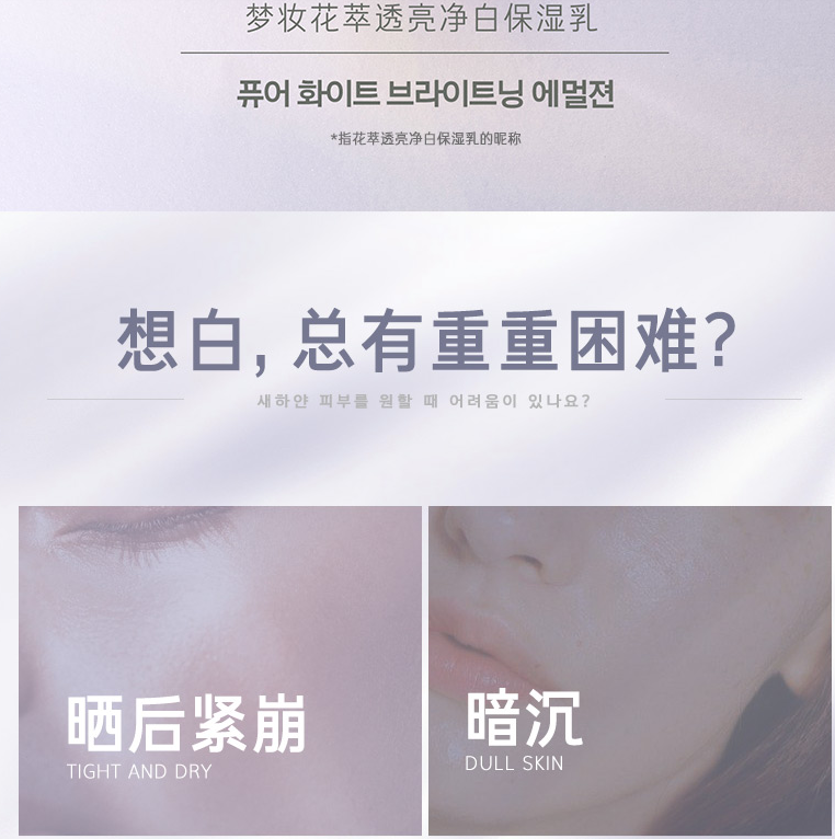 商品名称:【限时折扣】梦妆花萃透亮净白保湿水150m+ 乳125ml (22.10)