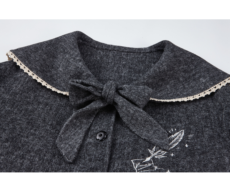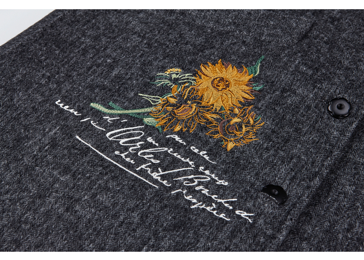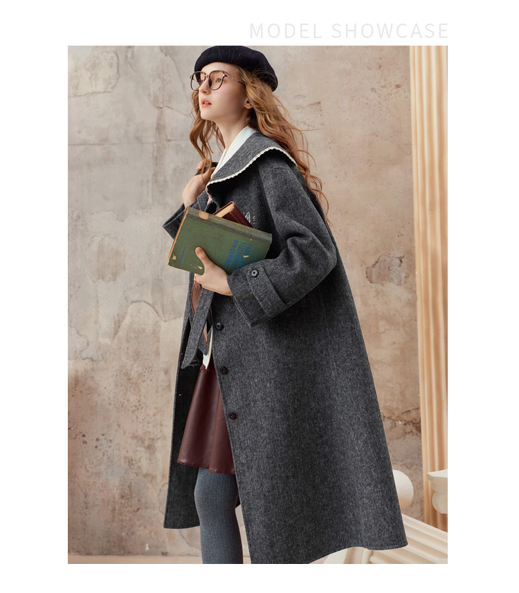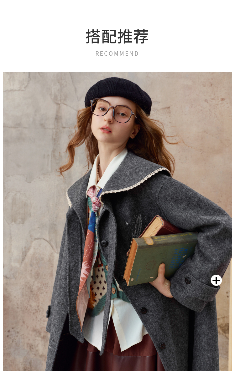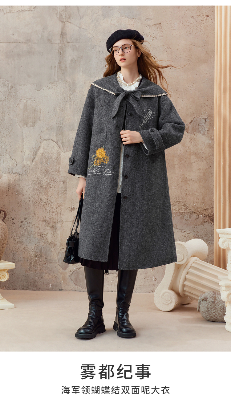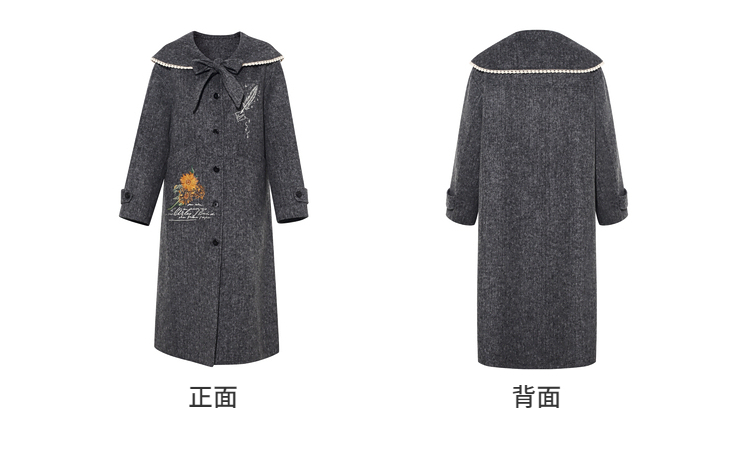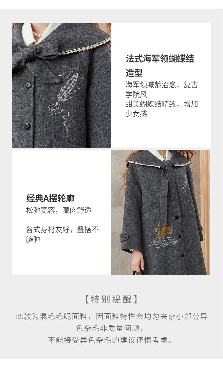 两三事梵高文艺 雾都纪事 2025秋冬新款复绑结海军领绣花毛呢外套