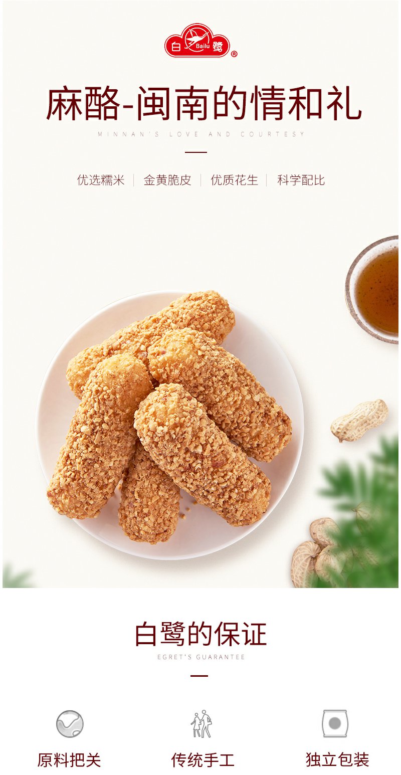 白鹭麻枣闽南老式麻粩安溪永春特产芝麻佬麻酪小吃花生味茶点糕点