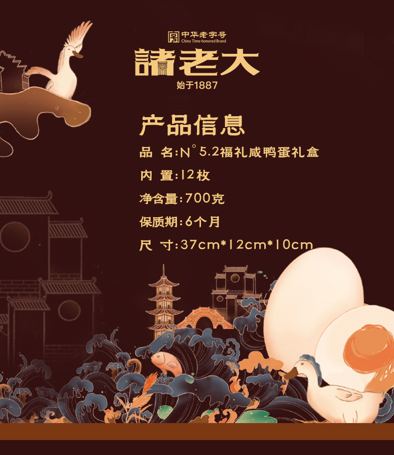 诸老大 N°5.2福礼咸鸭蛋礼盒(12枚裝) - 700g【端午】SKT