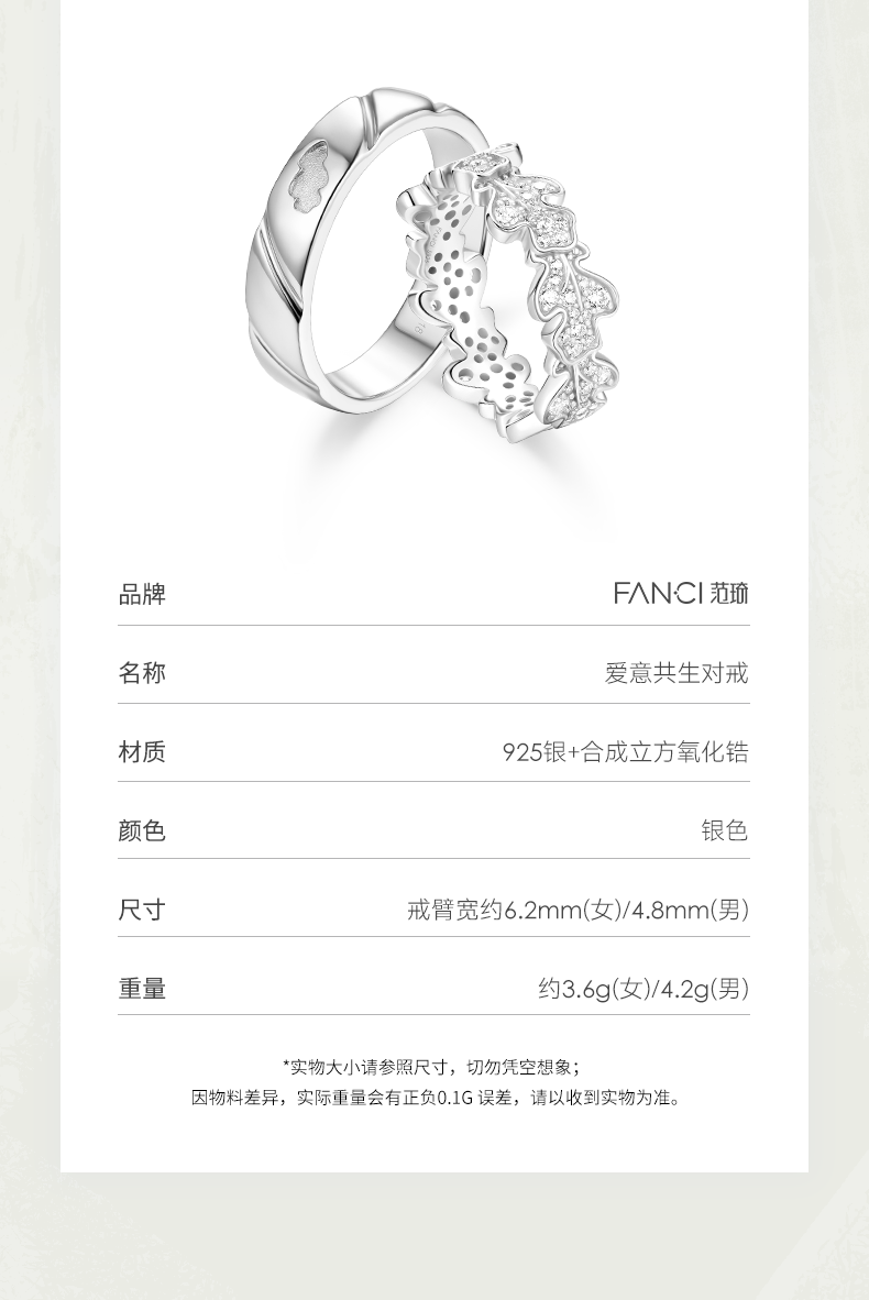 【明星同款】【爱意共生对戒】Fanci范琦 致橡树系列 闭口单戒 情侣款戒指 下单即赠精美包装+顺丰包邮+运费险