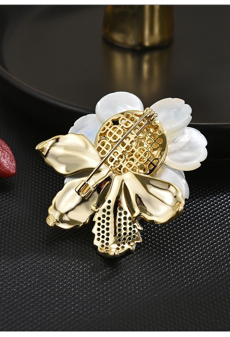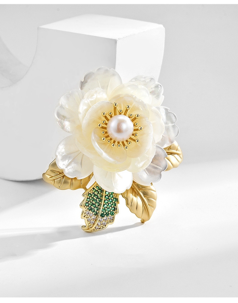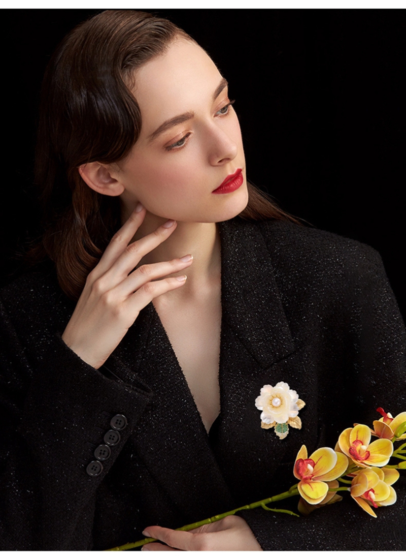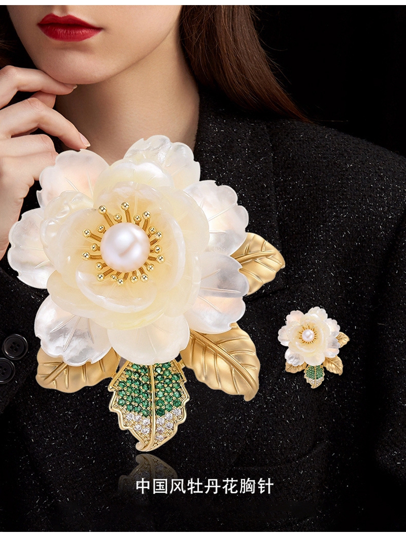 时尚奢华天然贝壳淡水珍珠山茶胸针胸花
