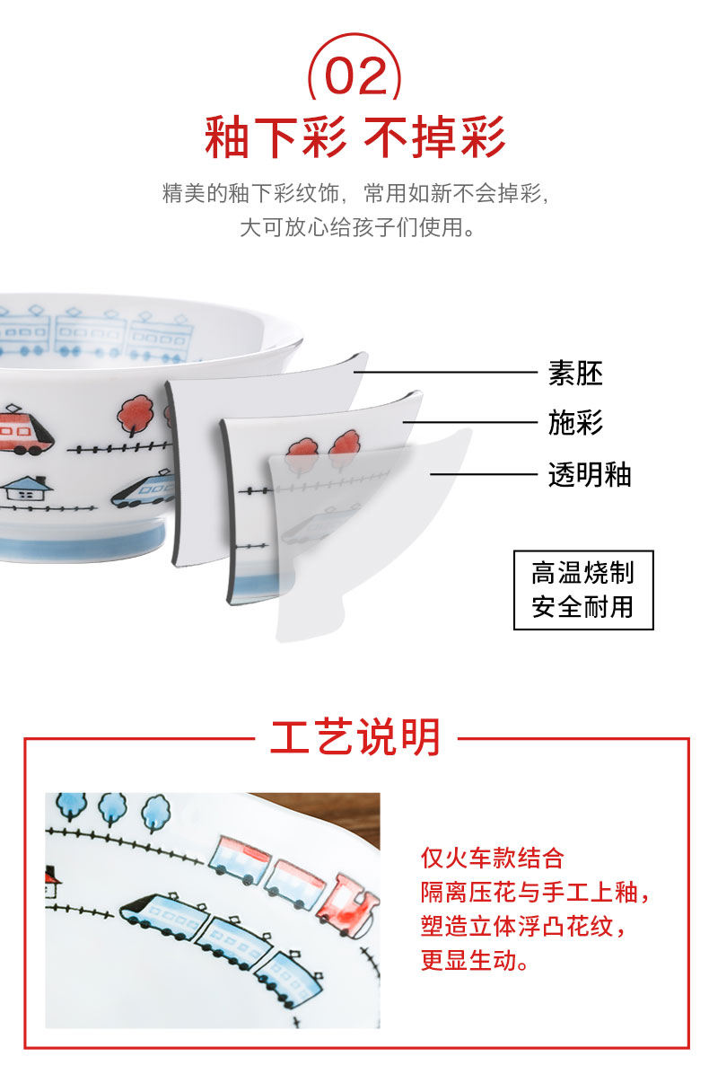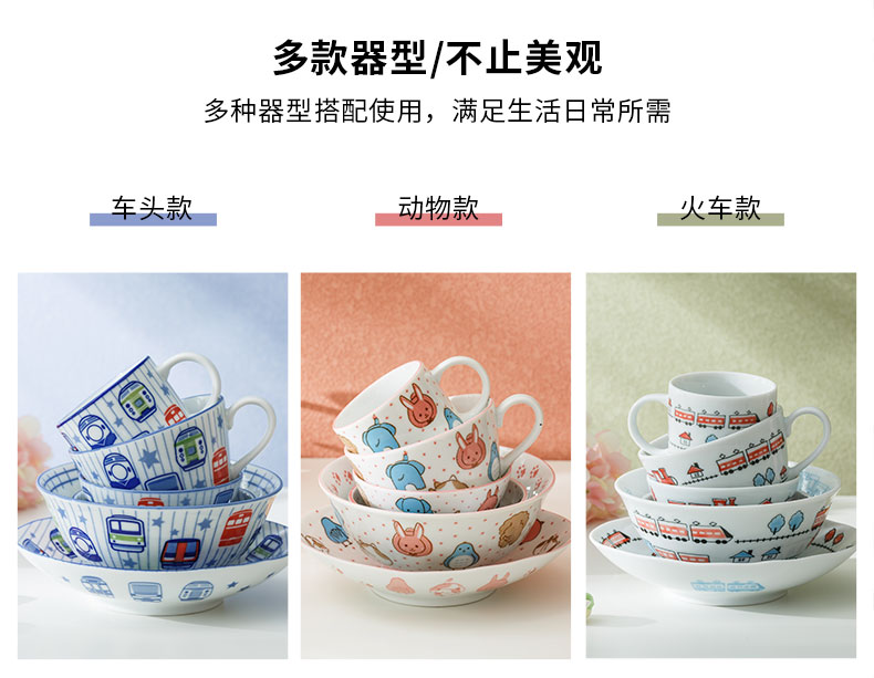 日本进口碗卡通儿童碗日式釉下彩餐具宝宝可爱饭碗杯