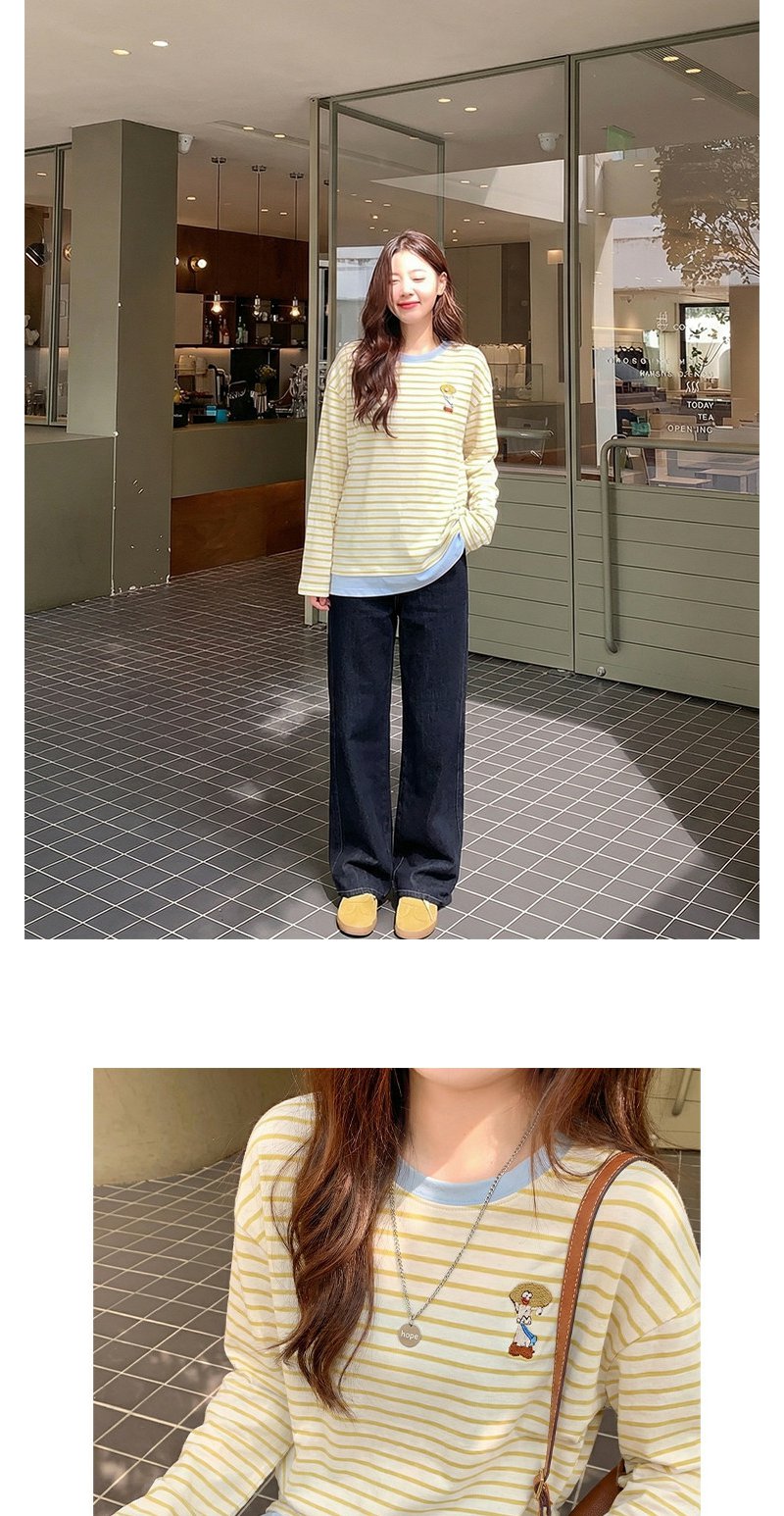 <曾小咸推荐>3.5现货秒杀 !微信超特价!韩系条纹刺绣长袖t恤 日常149.99 立减80 秒杀69.99!!