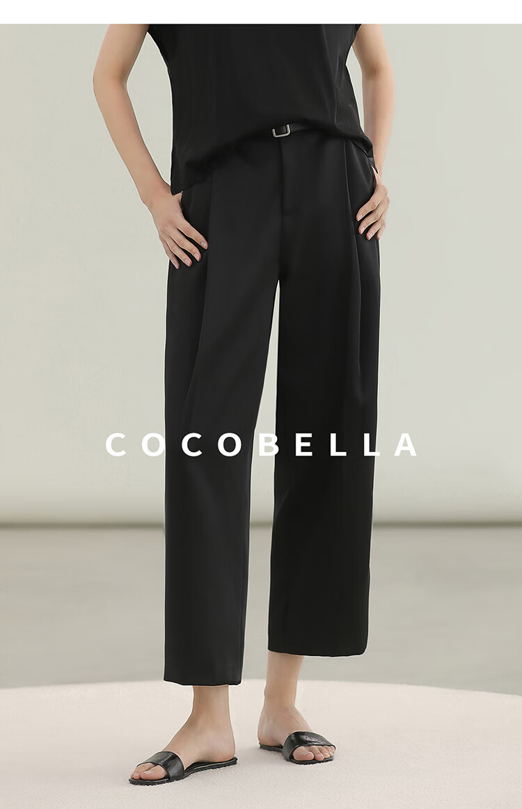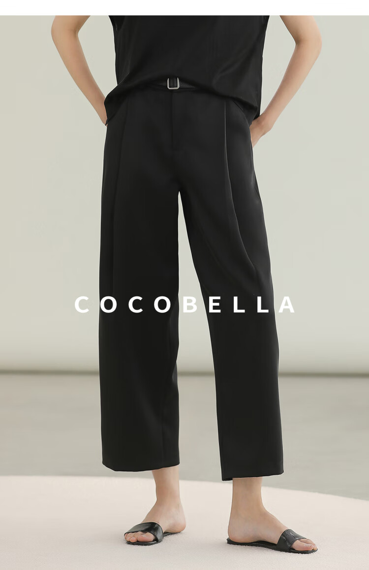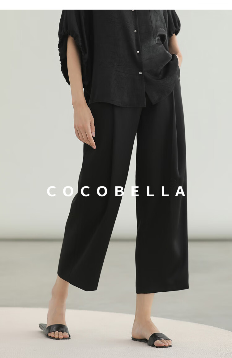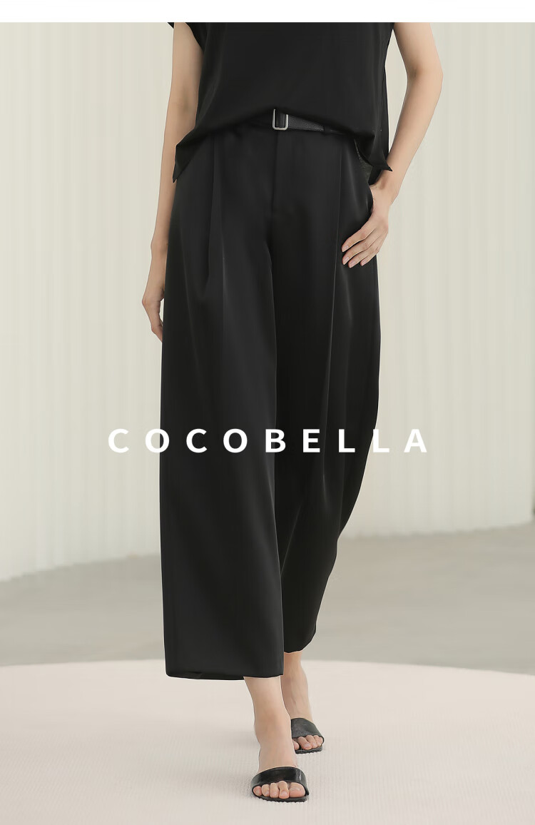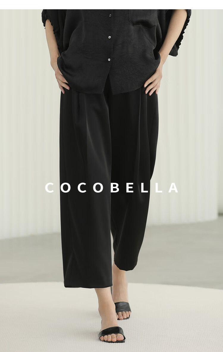 COCOBELLA轻奢仿醋酸休闲裤雾面缎女垂坠气质阔腿裤PA3079-2