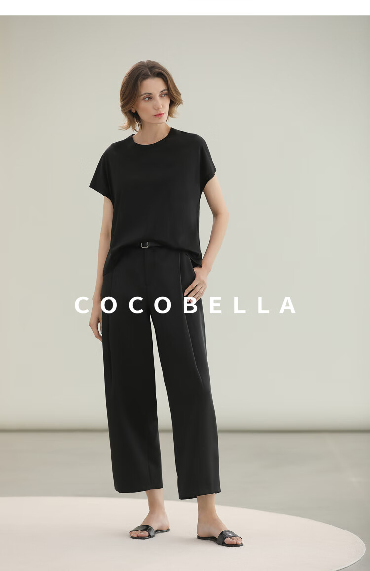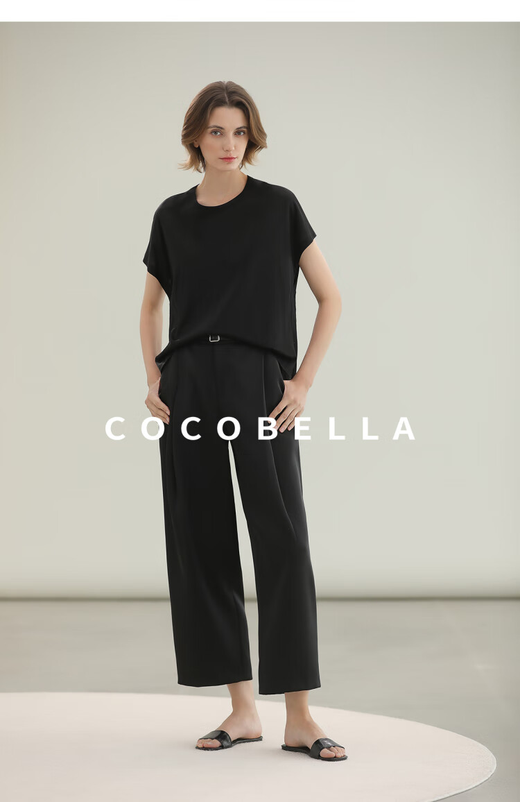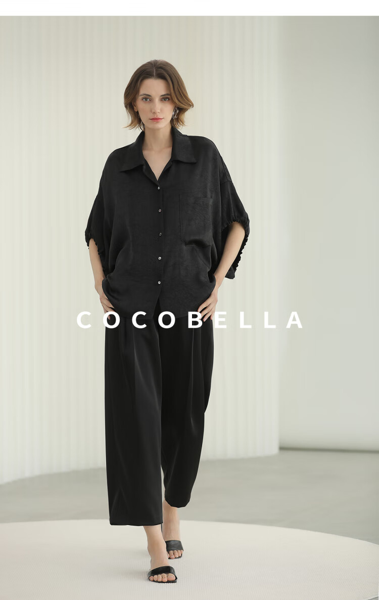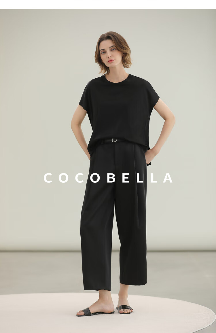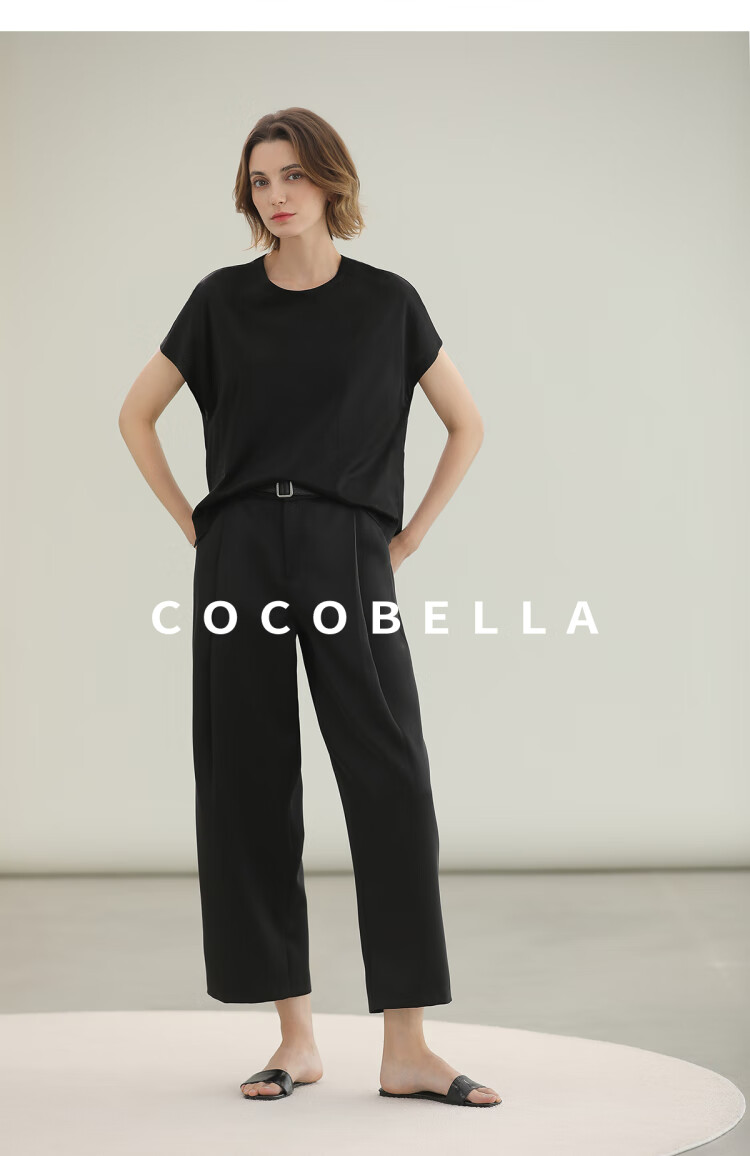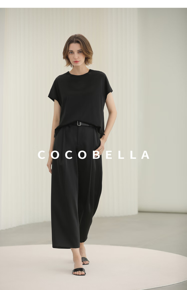COCOBELLA轻奢仿醋酸休闲裤雾面缎女垂坠气质阔腿裤PA3079-2