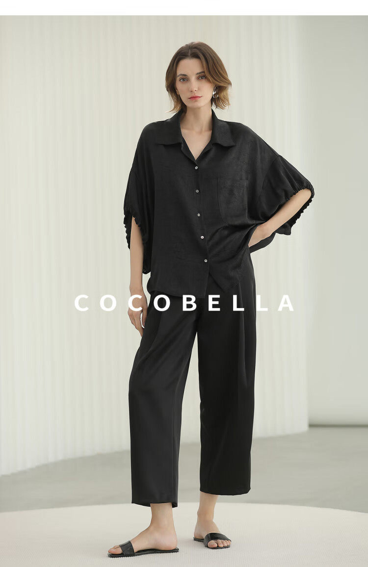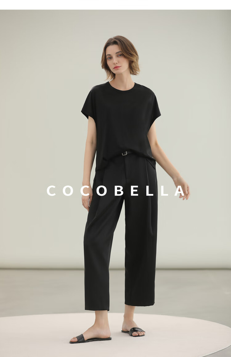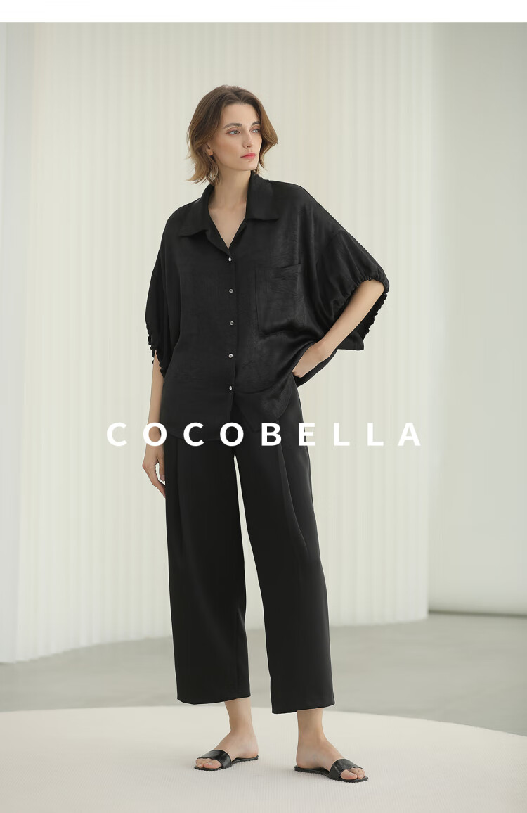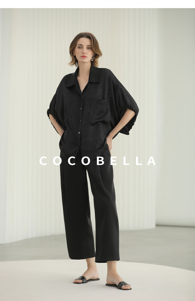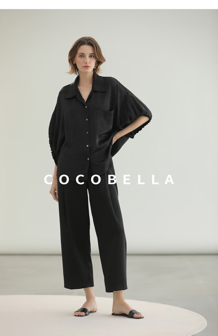 COCOBELLA轻奢仿醋酸休闲裤雾面缎女垂坠气质阔腿裤PA3079-2