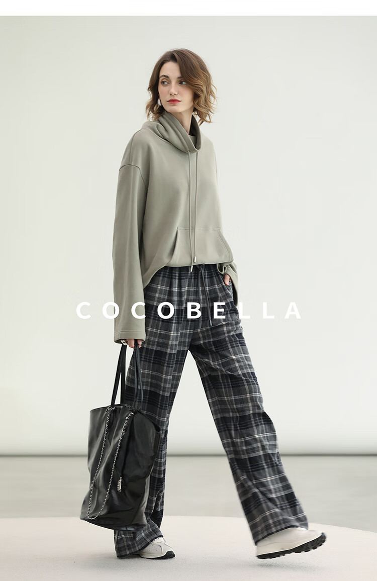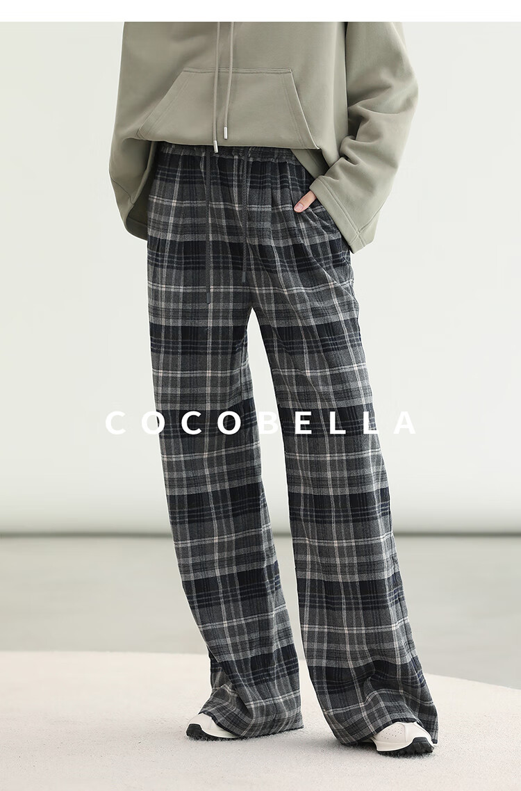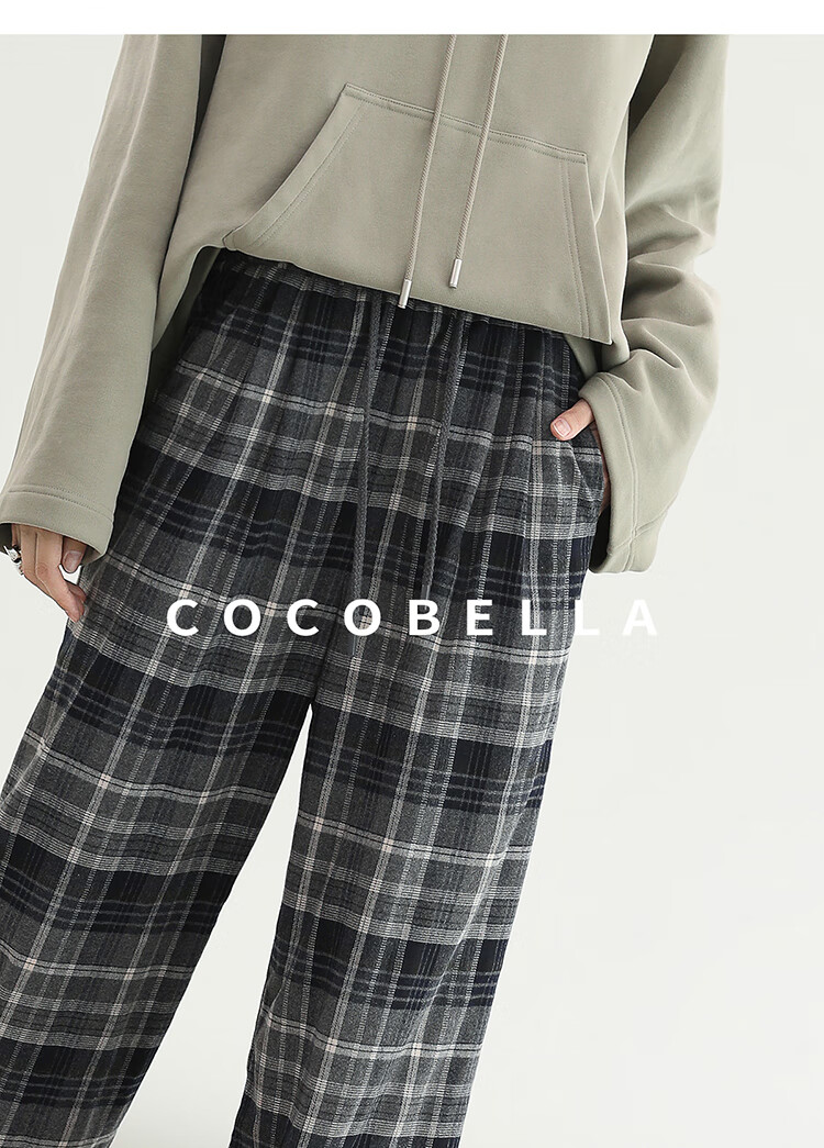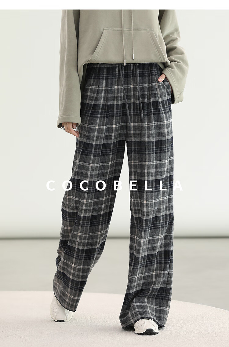 COCOBELLA通勤格纹阔腿裤秋新款休闲裤女小个子直筒裤PA3093