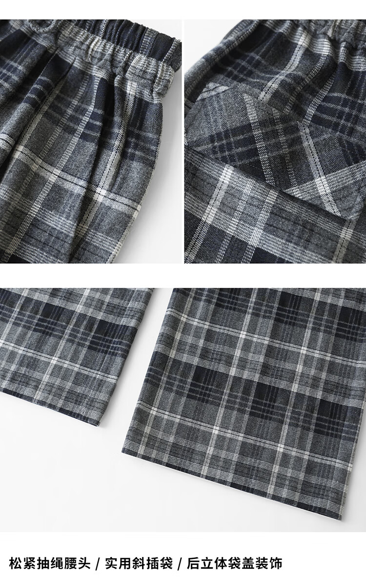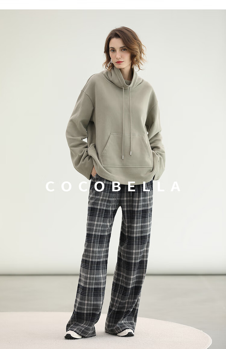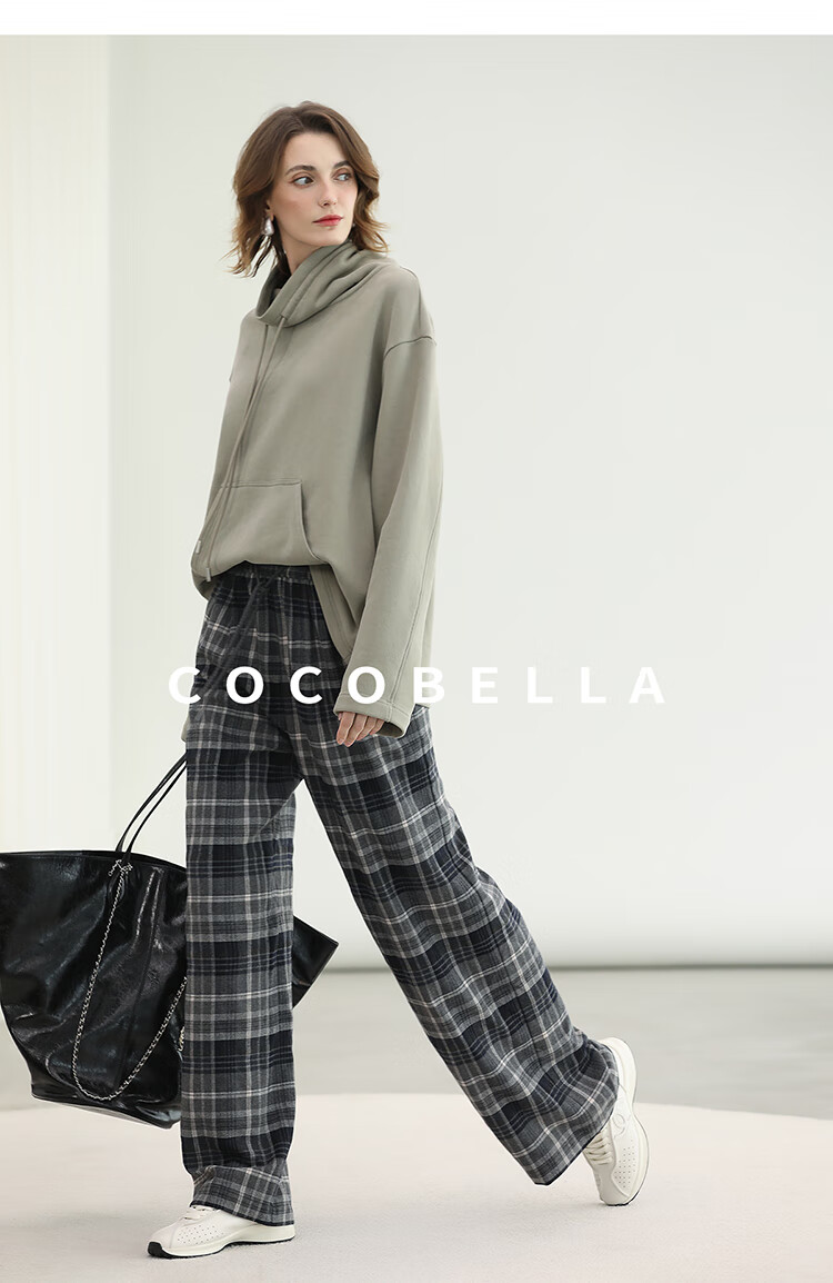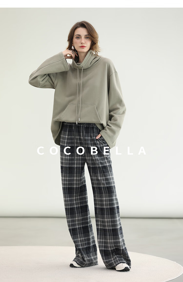 COCOBELLA通勤格纹阔腿裤秋新款休闲裤女小个子直筒裤PA3093