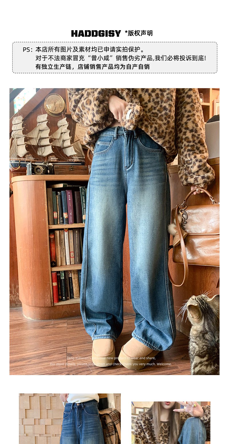 <曾小咸推荐>3.21现货秒杀 !微信超特价!深蓝阔腿加绒直筒牛仔裤 日常229.99 立减130 秒杀99.99!!