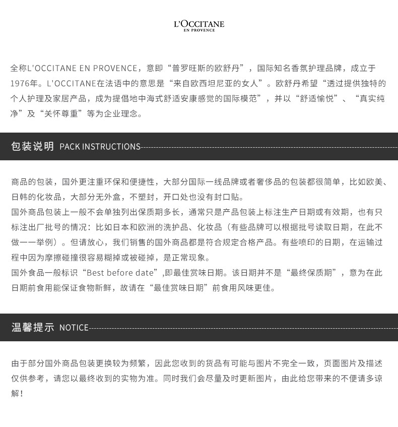 L'OCCITANE 欧舒丹 马鞭草清新润手霜 30ML 鹿晗同款 法国