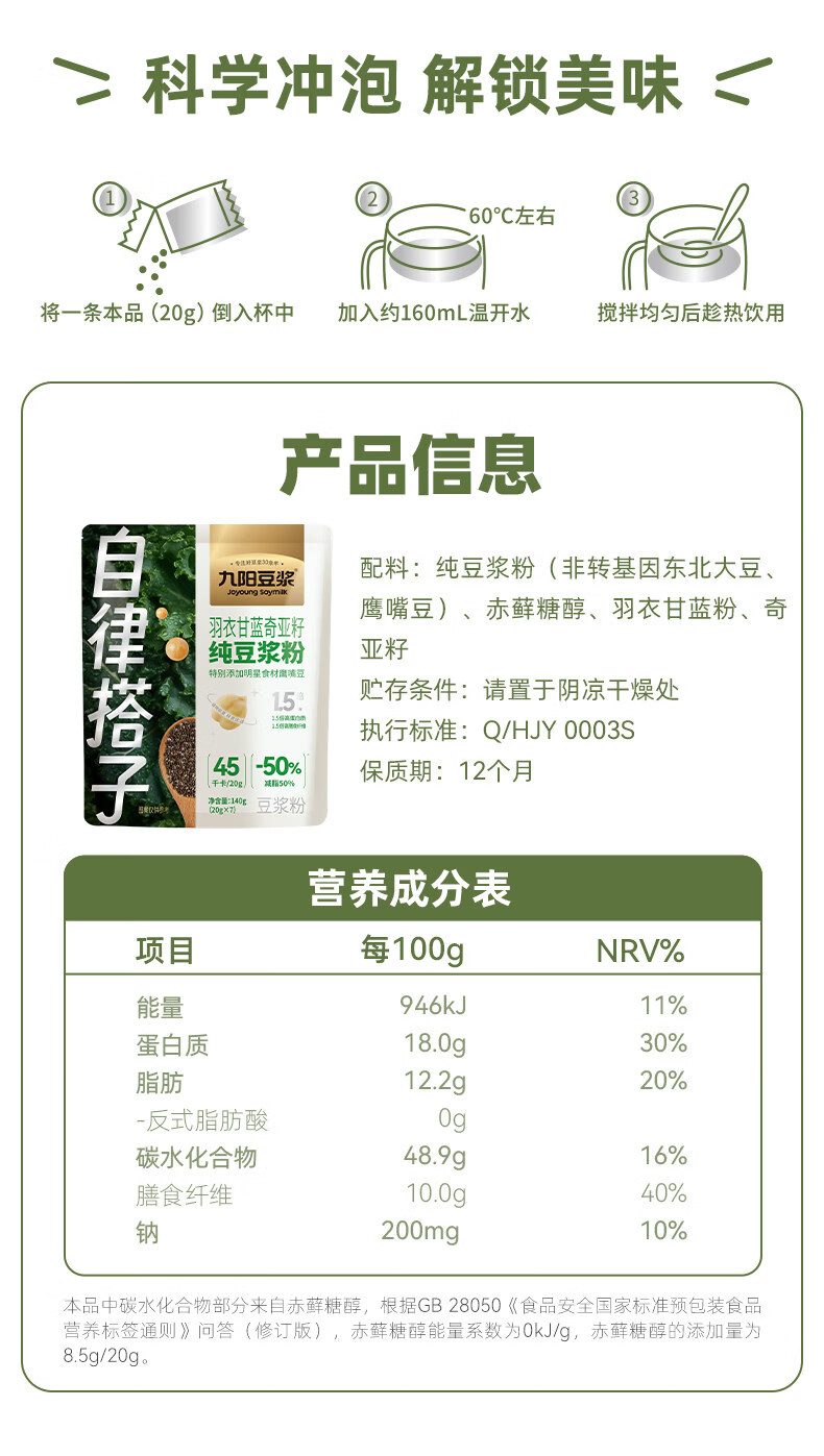 九阳羽衣甘蓝奇亚籽豆浆粉140g