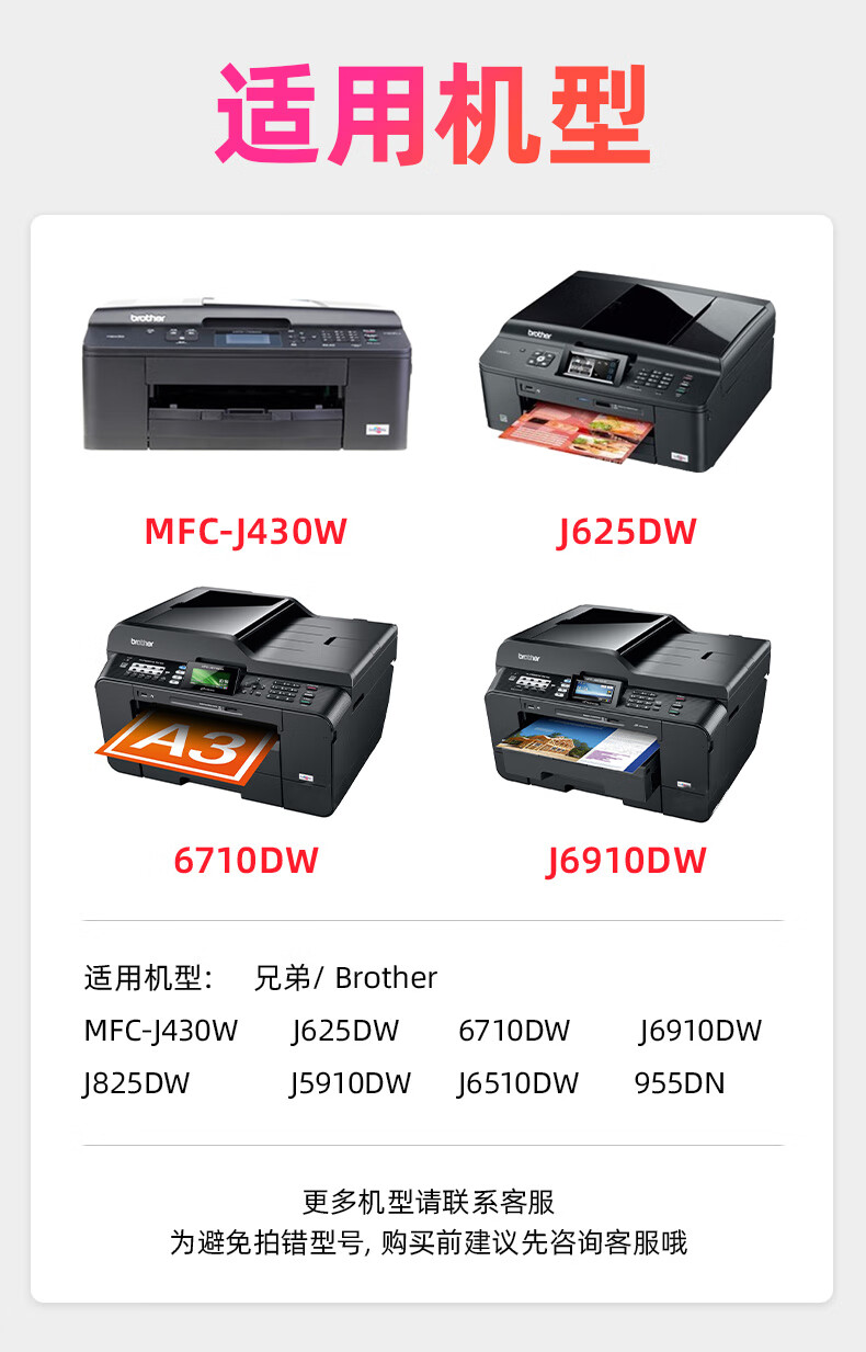绘威 LC400墨盒 适用兄弟MFC-J430W J5910DW J625DW J6710DW J6910 J825 J6510DW LC450打印机墨盒 四色套装